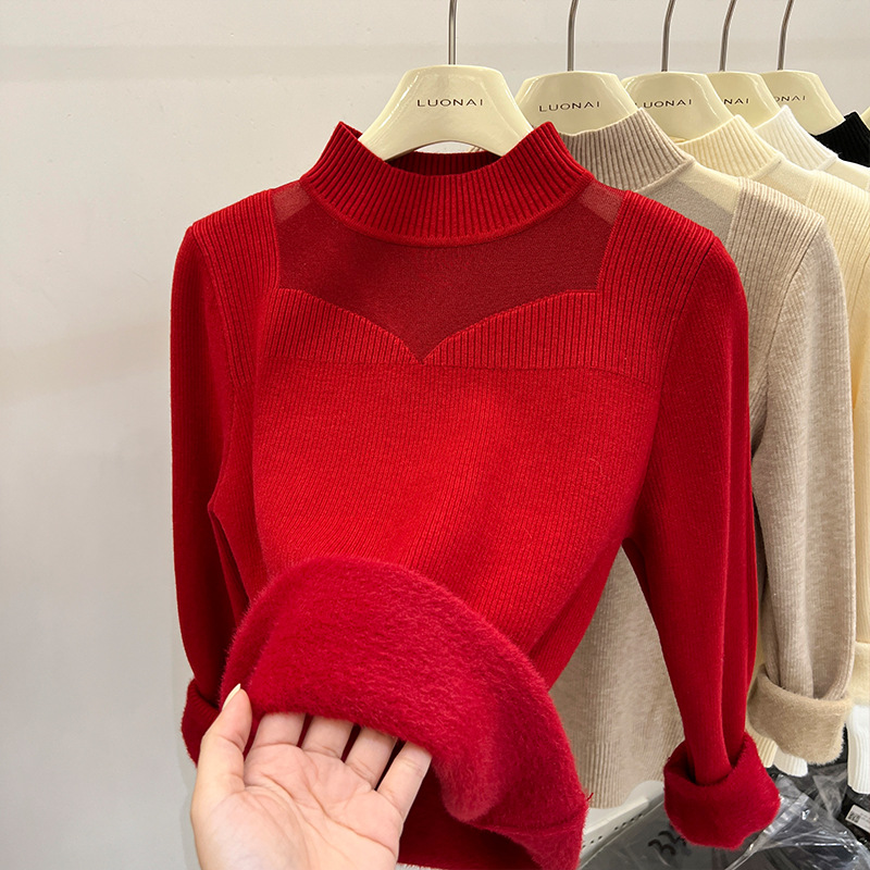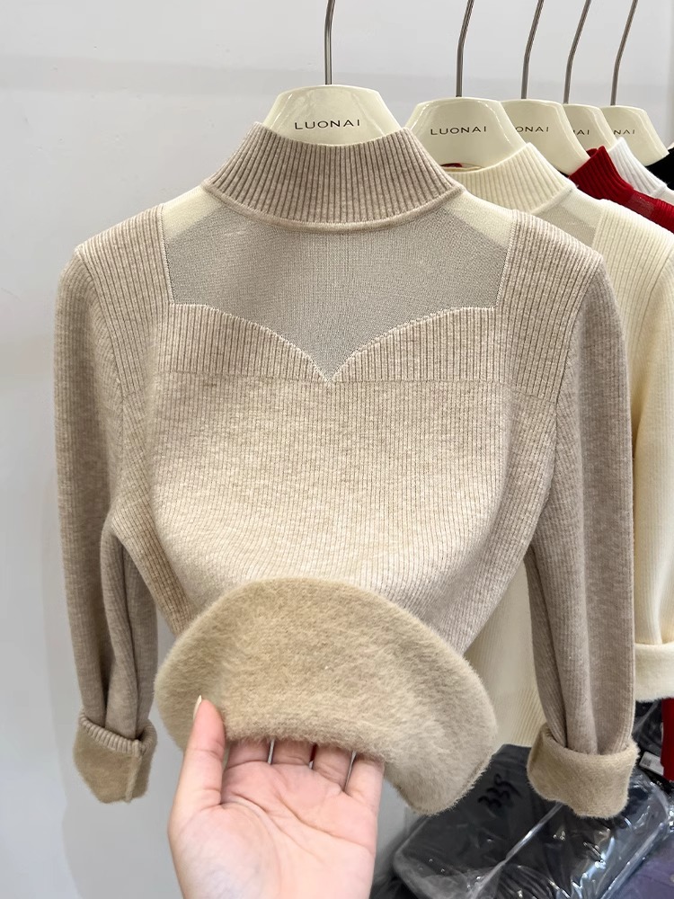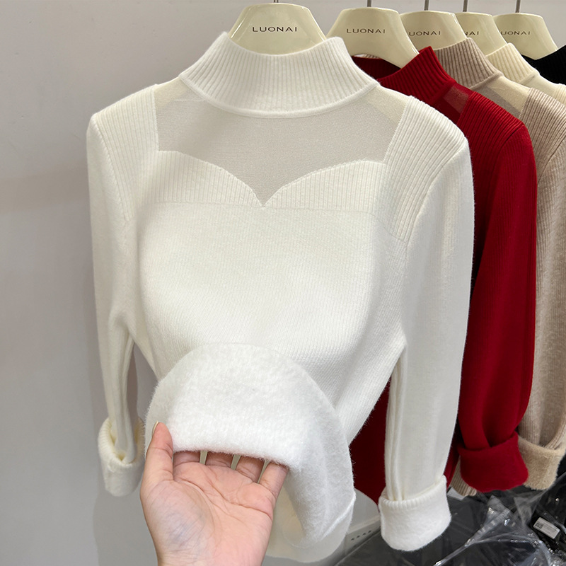 Цельный свитер из флиса с начесом и утолщением для женщин, новая модель зимы 2025, модный сетчатый зимний базовый слой, ультратолстый.