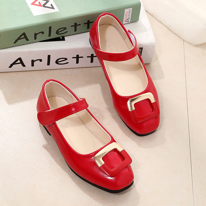 Главная страница > 2019 новая Корейская версия маленькой кожаной обуви для девочек, оптовая продажа, однотонная детская обувь на липучке, большие и средние детские туфли с металлической пряжкой