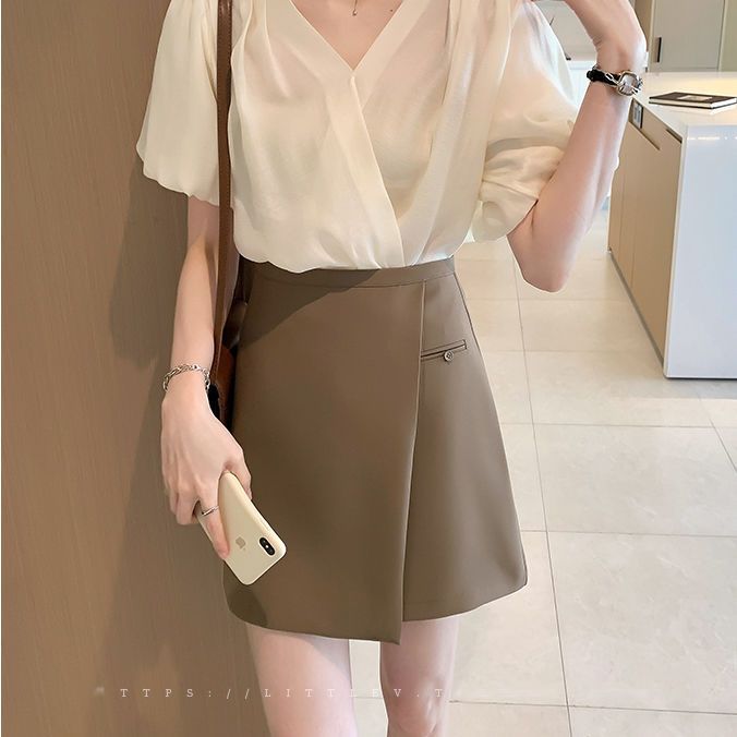 Главная страница > Короткая юбка цвета хаки для женщин, лето 2025, новый дизайн, нишевая, высокая талия, элегантная юбка-трапеция, закрывающая бедра, юбка-костюм
