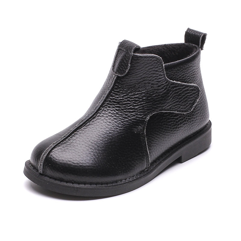 Осенне-зимние новинки 2025: детские ботинки из натуральной кожи для мальчиков и девочек, утепленные короткие сапоги на флисе, ботинки на липучке, детская хлопковая обувь, оптом.