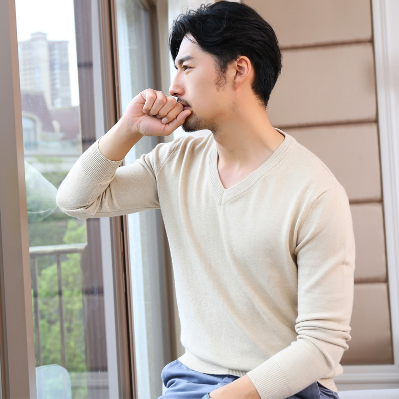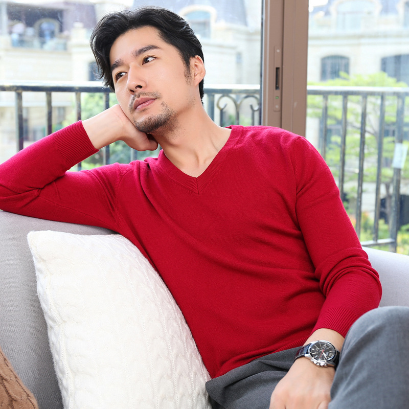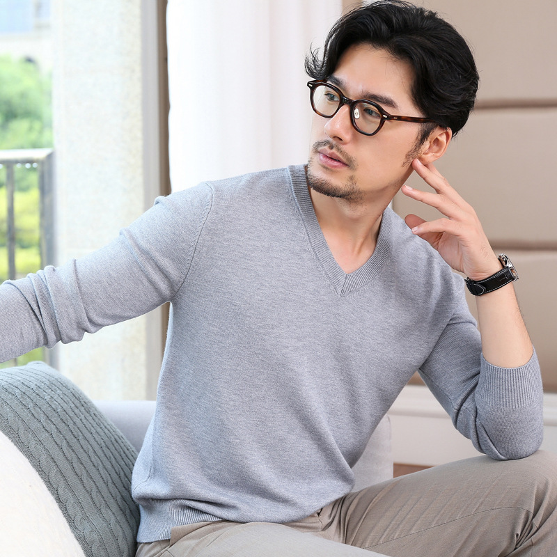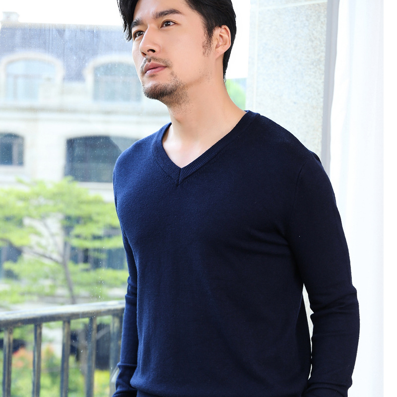 Главная страница > Производители поставляют осенний мужской пуловер с V-образным вырезом, Однотонный свитер больших размеров в наличии