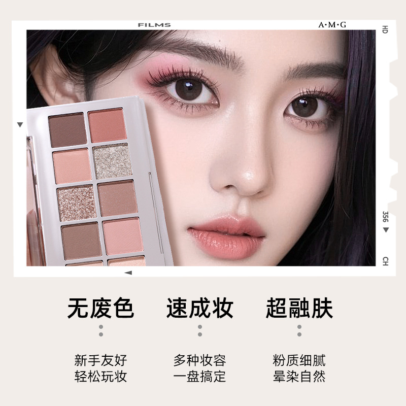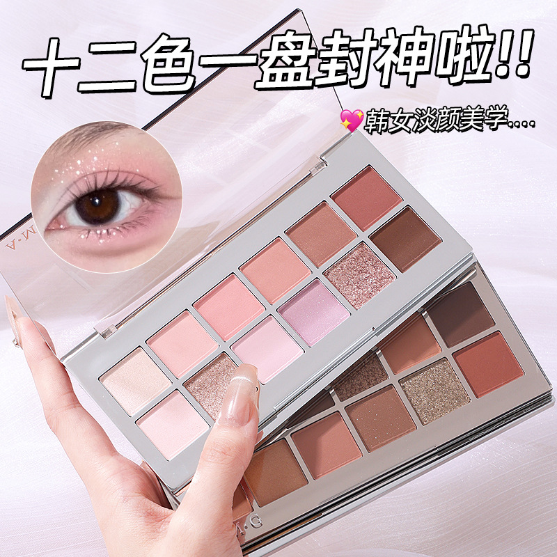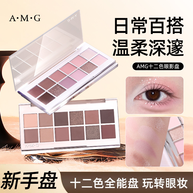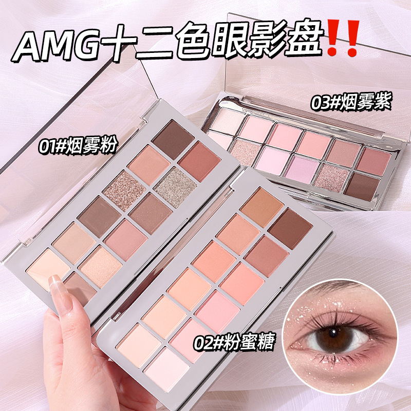 Двенадцатицветная палитра теней для век A·M·G, тонкая пудра, дымчато-землистый матовый, тонкое мерцание, не летящая пудра, корейские тени для век