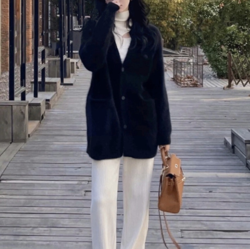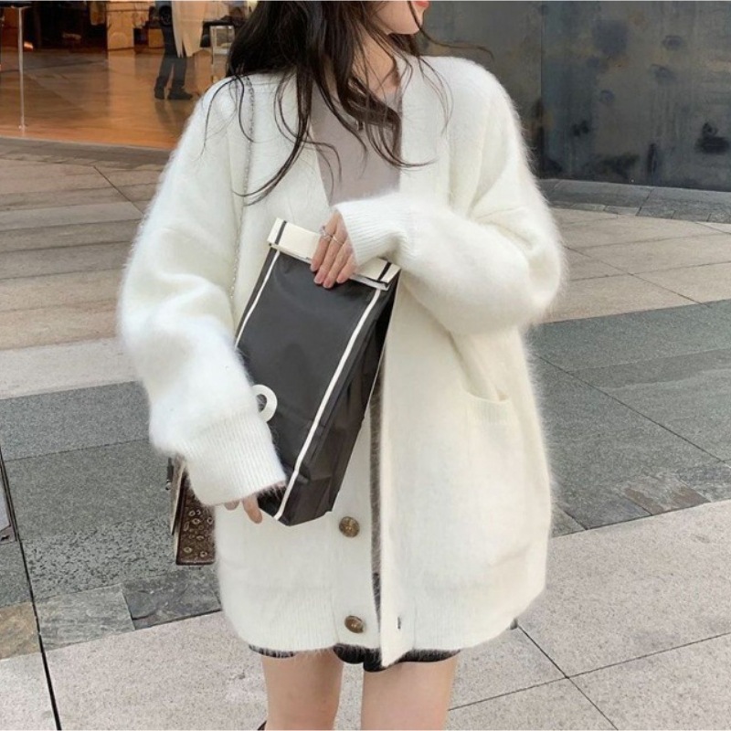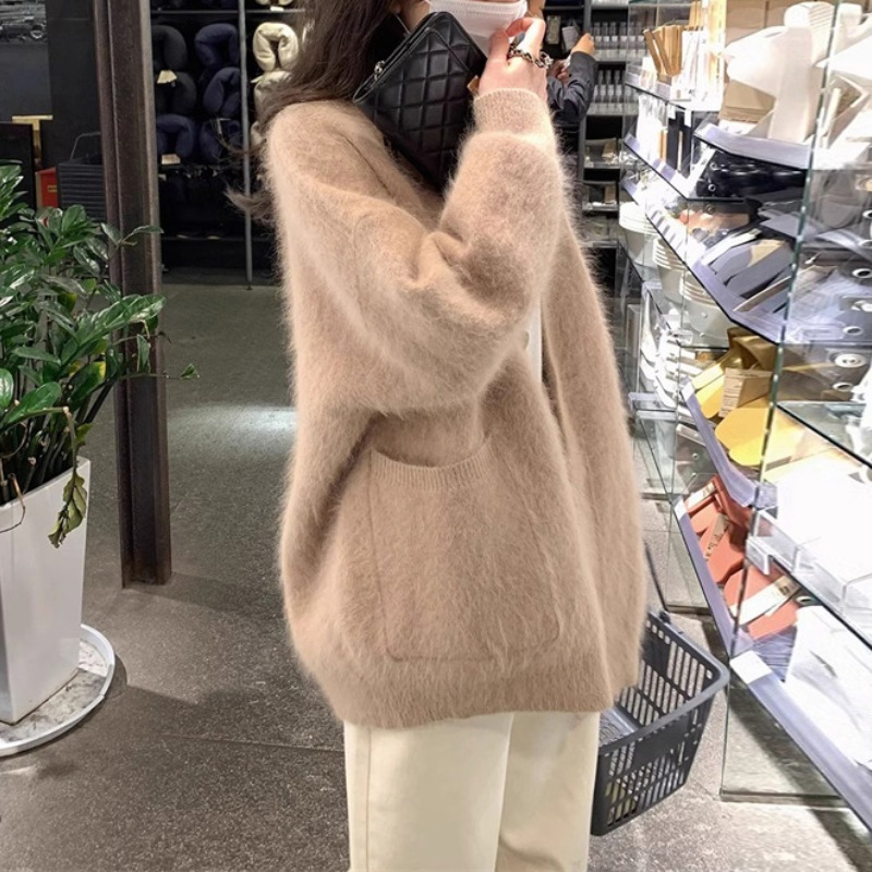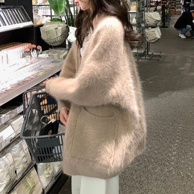 Главная страница > Мягкий клейкий вязаный кардиган в Корейском стиле с V-образным вырезом, женский осенне-зимний новый свободный свитер из искусственного норкового бархата, кардиган, пальто