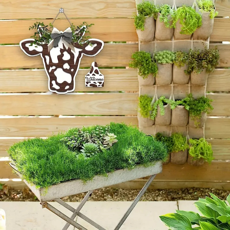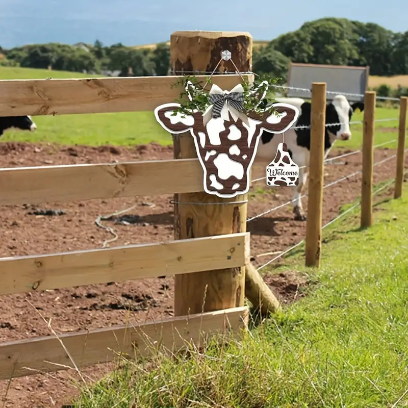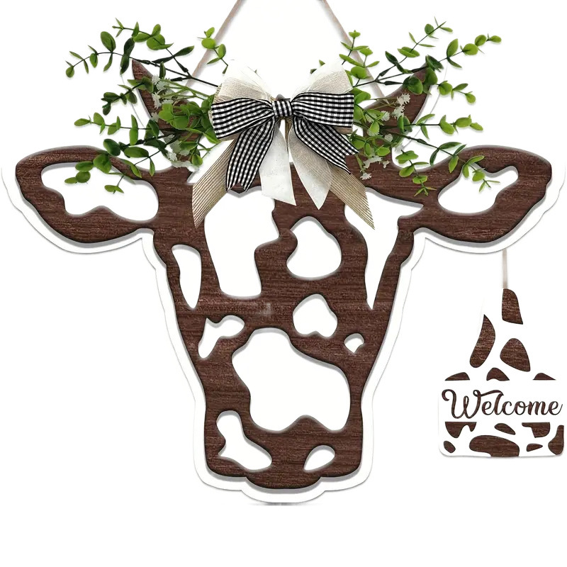 Главная страница > Голова коровы деревянный знак на открытом воздухе коровы приветственный знак дверной повешение животных дверь висит бант на крыльце украшения фермы