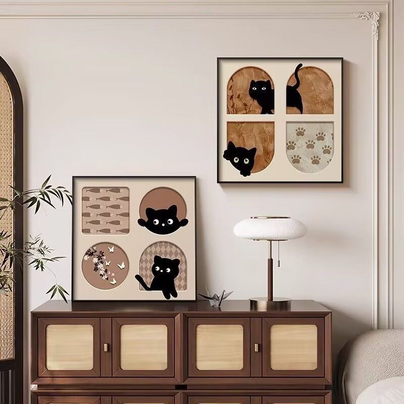 Главная страница > Картина в средневековом стиле с изображением кошки для украшения гостиной, французская ретро-картина для декора рабочего стола, картина для ресторана, нишевое искусство, подвесная картина