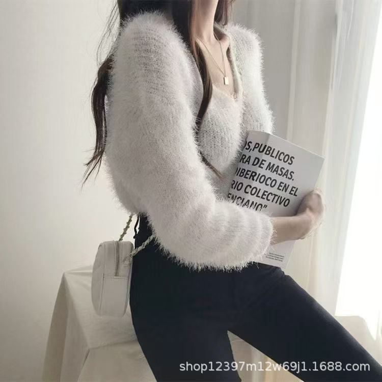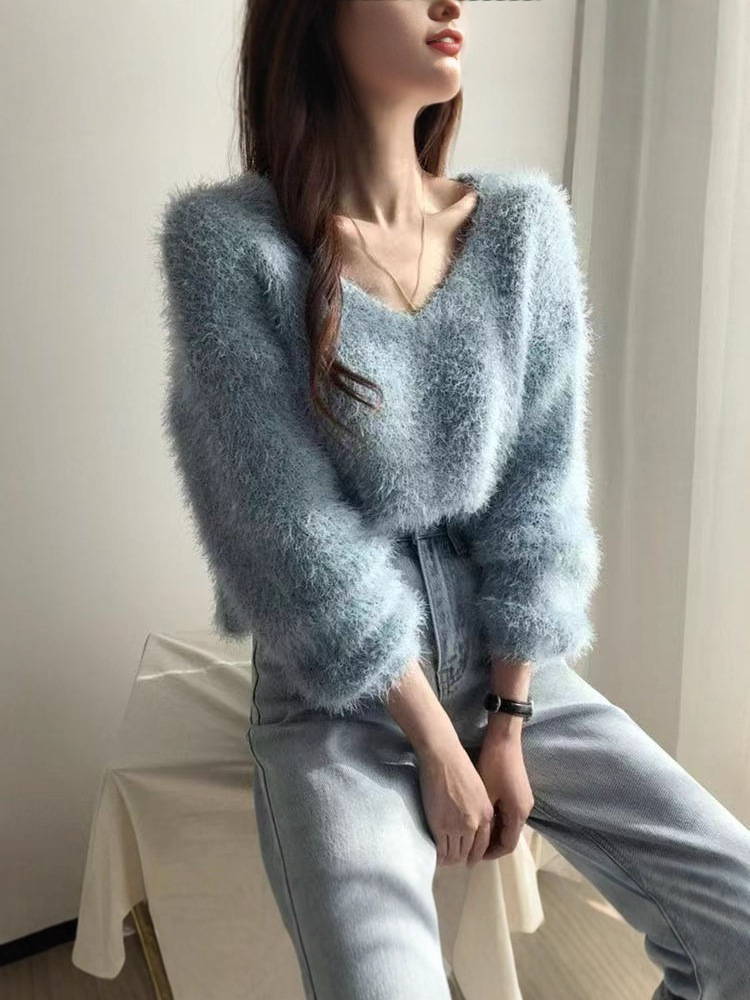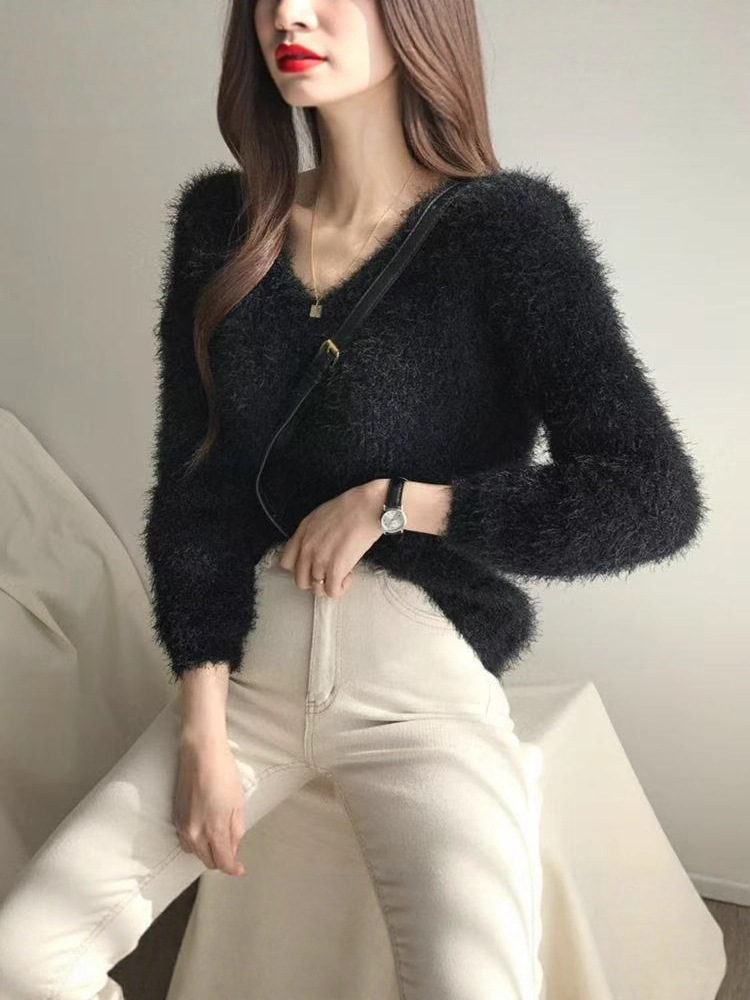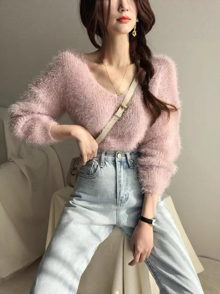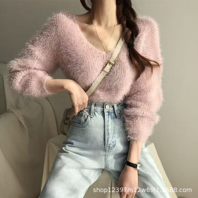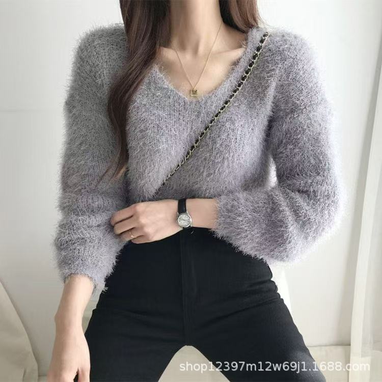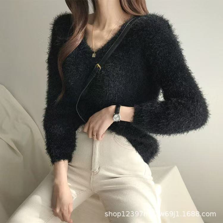 Главная страница > Женский свитер с V-образным вырезом, новый осенне-зимний мягкий и ленивый стиль, сексуальная трикотажная базовая рубашка с открытыми плечами Pure Desire Spicy Girl.