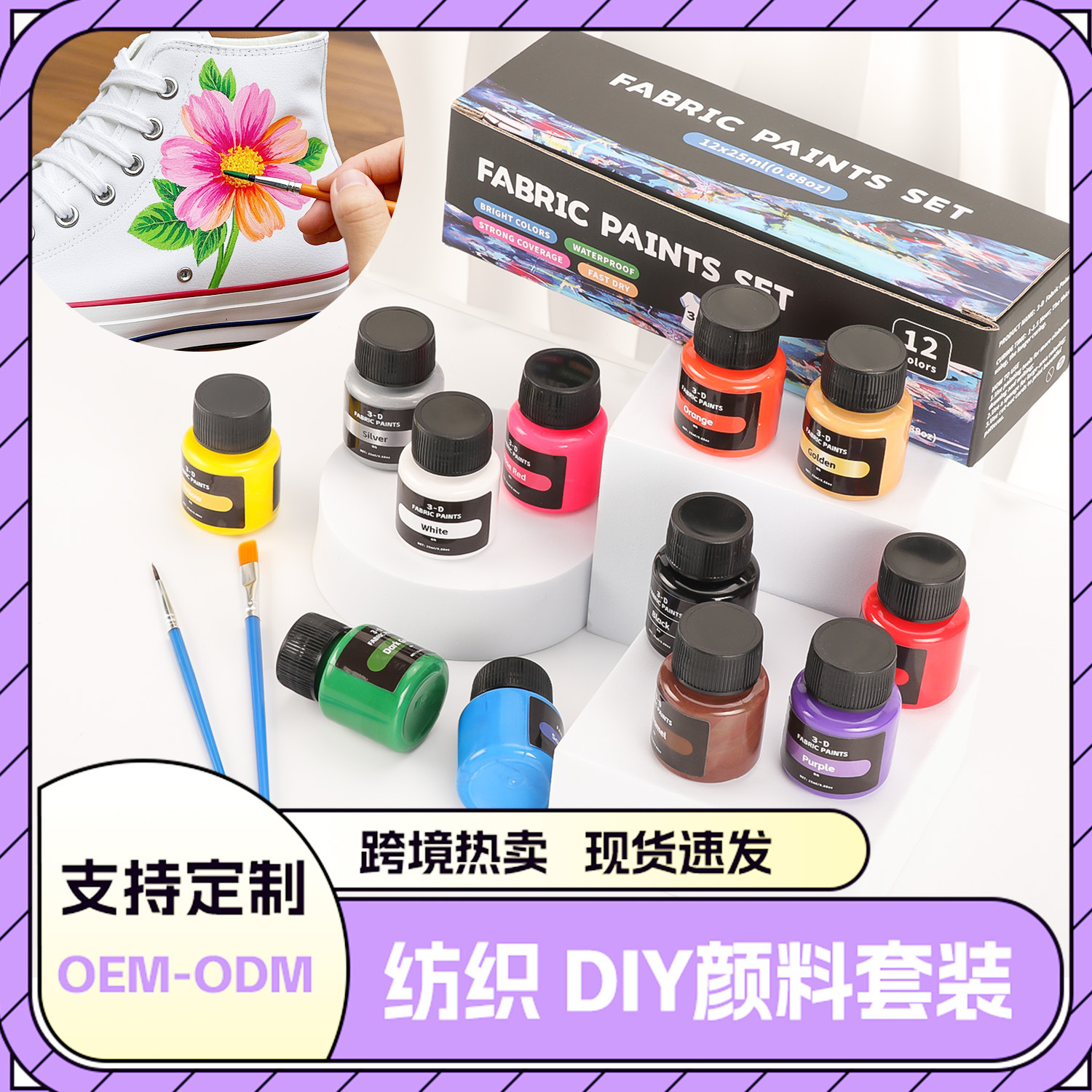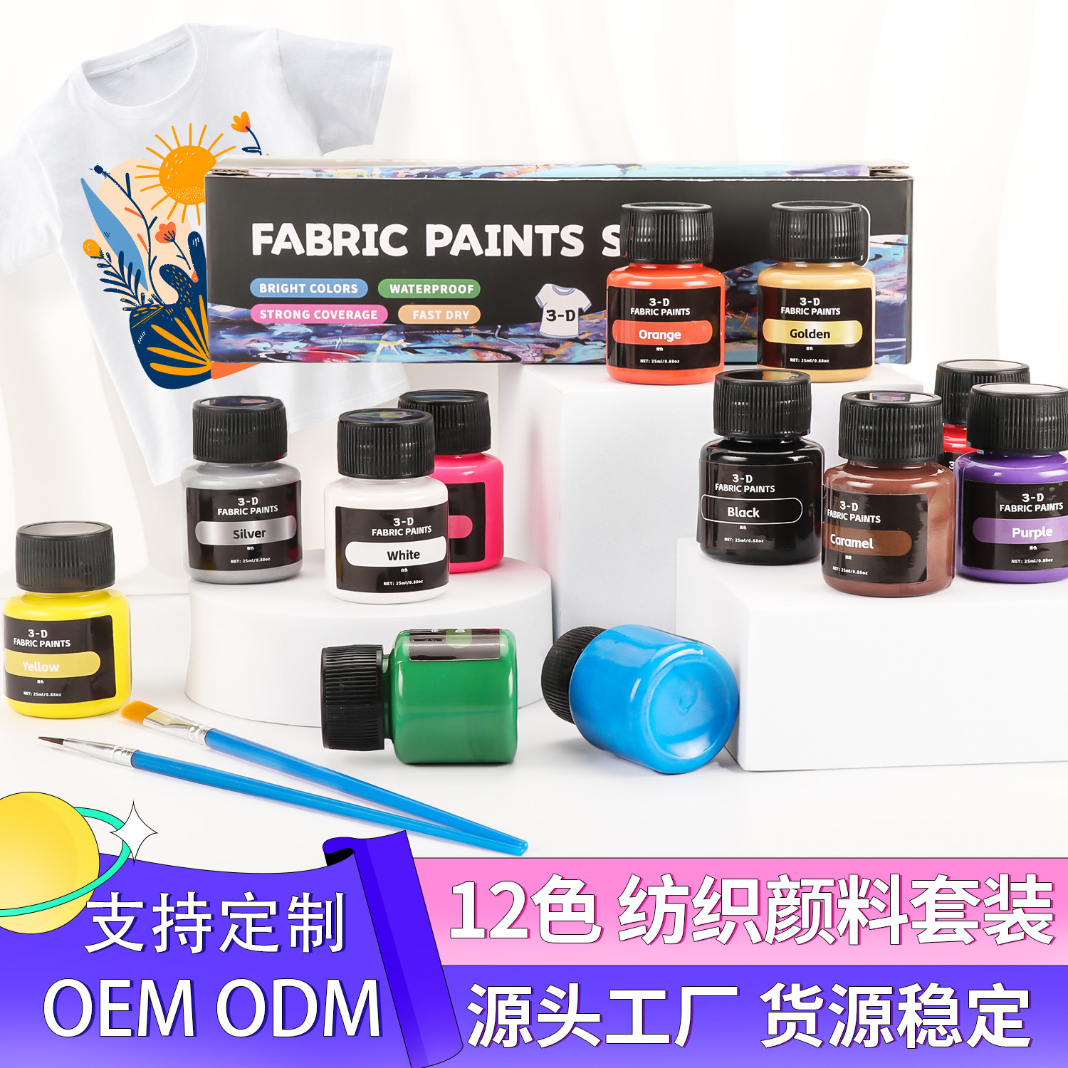 Трансграничные 12 цветов 25ml набор текстильных пигментов ручной работы diy стекло граффити роспись акварель акварель акриловый пигмент