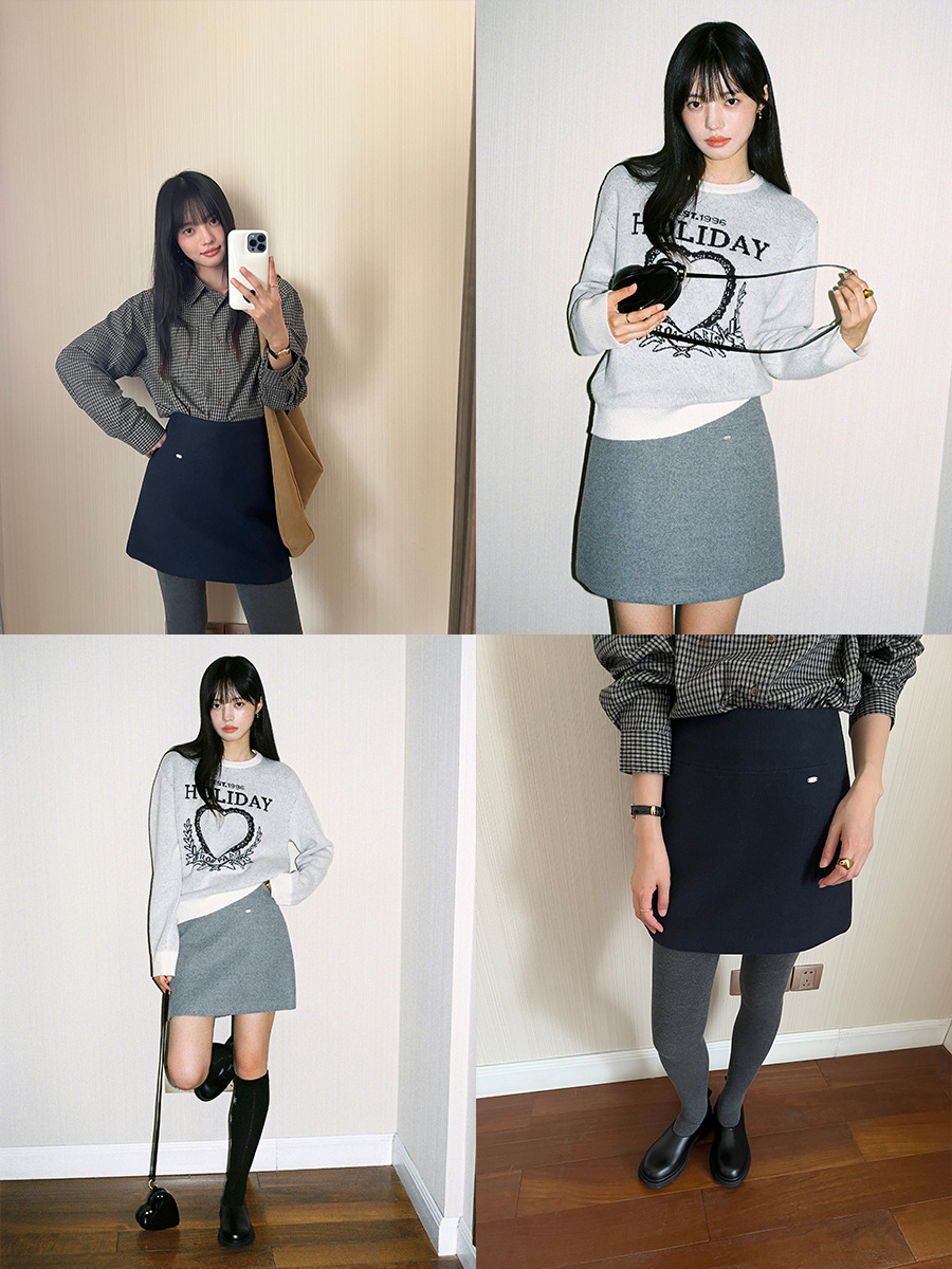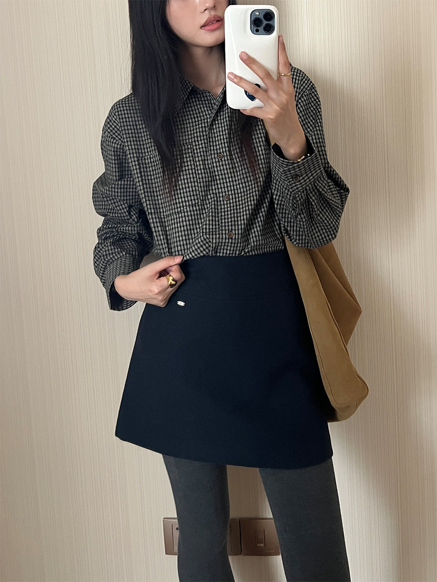 Главная страница > Шерстяная юбка Yifu Fu для женщин, осень-зима 2024, новый стиль, маленькая, высокая талия, утягивающая, А-силуэта, короткая юбка 3678