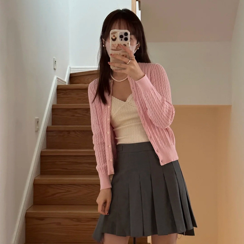 RL Raff вязаный свитер с вышивкой Twist Pony Mark, женский кардиган с круглым вырезом, короткий женский топ, тонкий вязаный жакет