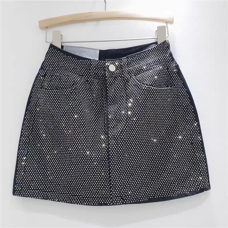 Главная страница > Весна и лето 2024, новая джинсовая юбка Heavy Industry Hot Diamond Design, женская модная тонкая юбка трапециевидной формы с высокой талией на бедрах