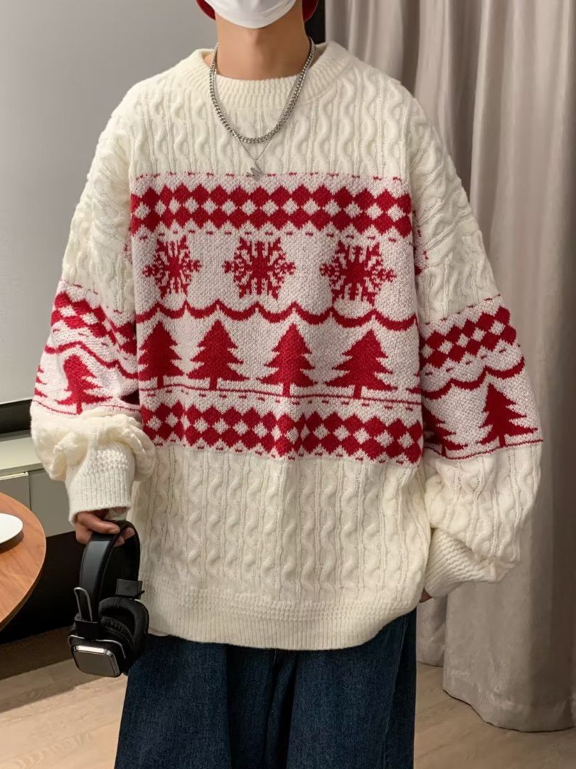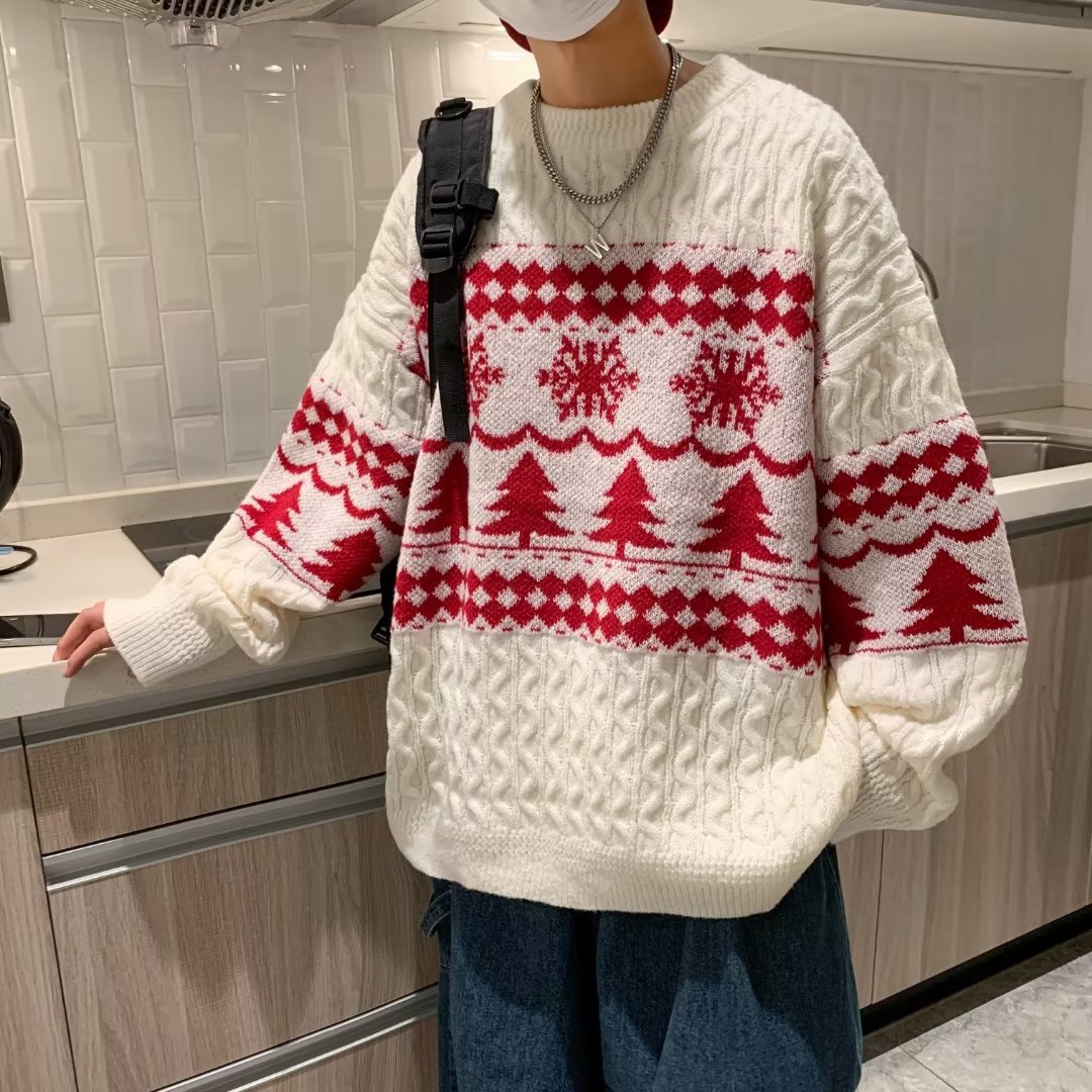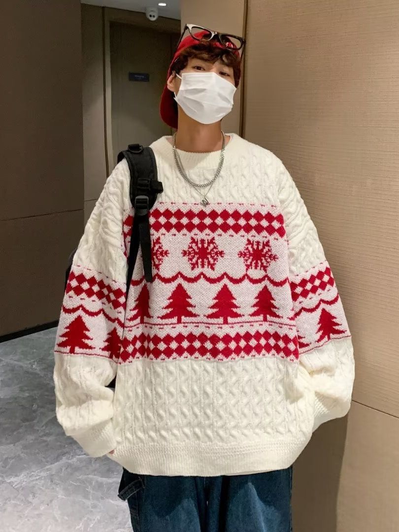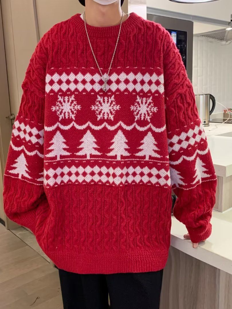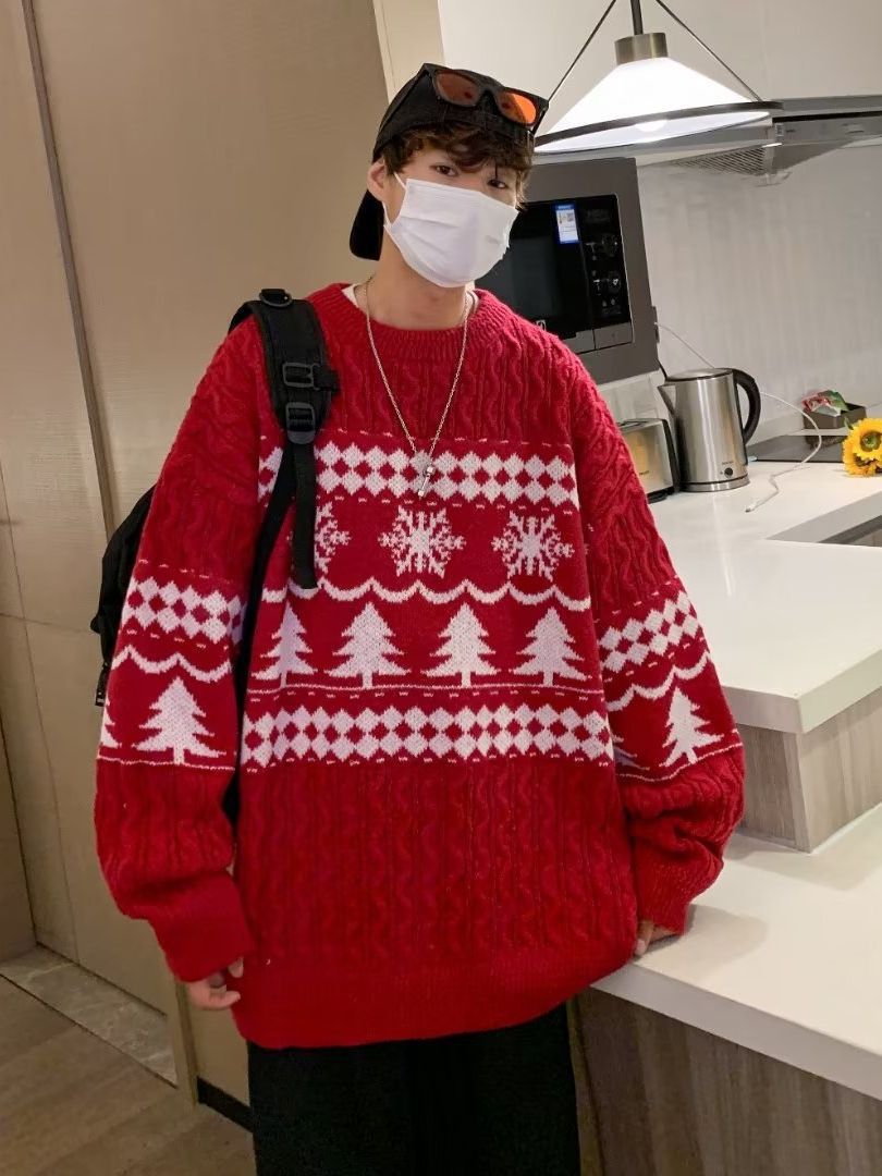 Главная страница > Рождественский красный свитер в японском стиле ретро с ромбовидным узором для мужчин и женщин, зимний пуловер в ленивом стиле, вязаный топ