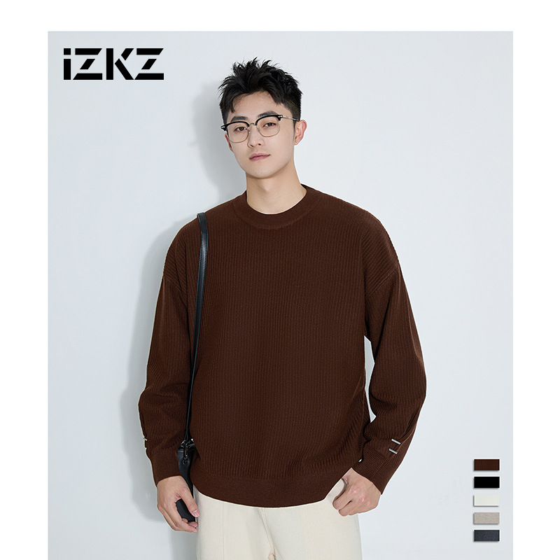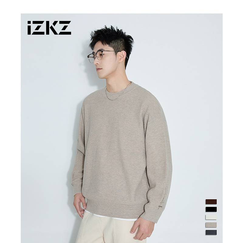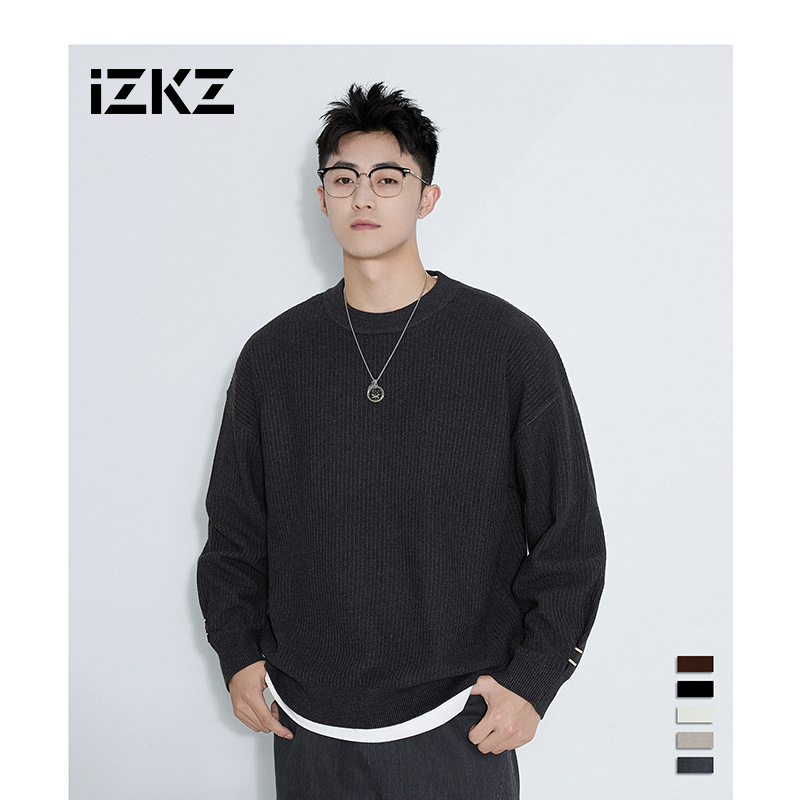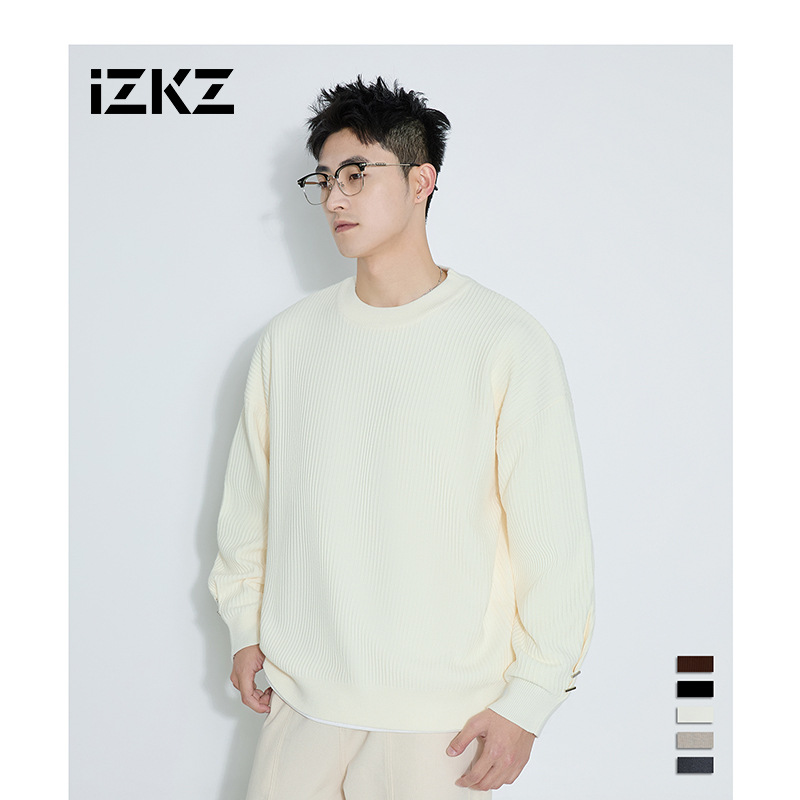 Главная страница > Белая Зава IZKZ | осень и зима мужские круглые вырезы сплошной цвет трикотажный свитер с длинными рукавами текстурный смысл простой свободный M24318