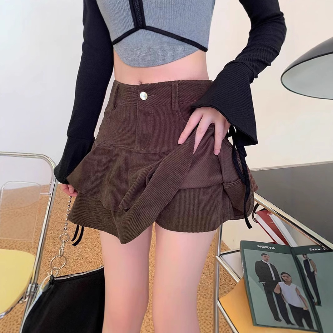 Главная страница > 2025 новый осенний и зимний маленький мужчина с высокой талией двойной буквой пушистый вельвет короткая юбка юбка рыбий хвост юбка юбка половинка женский