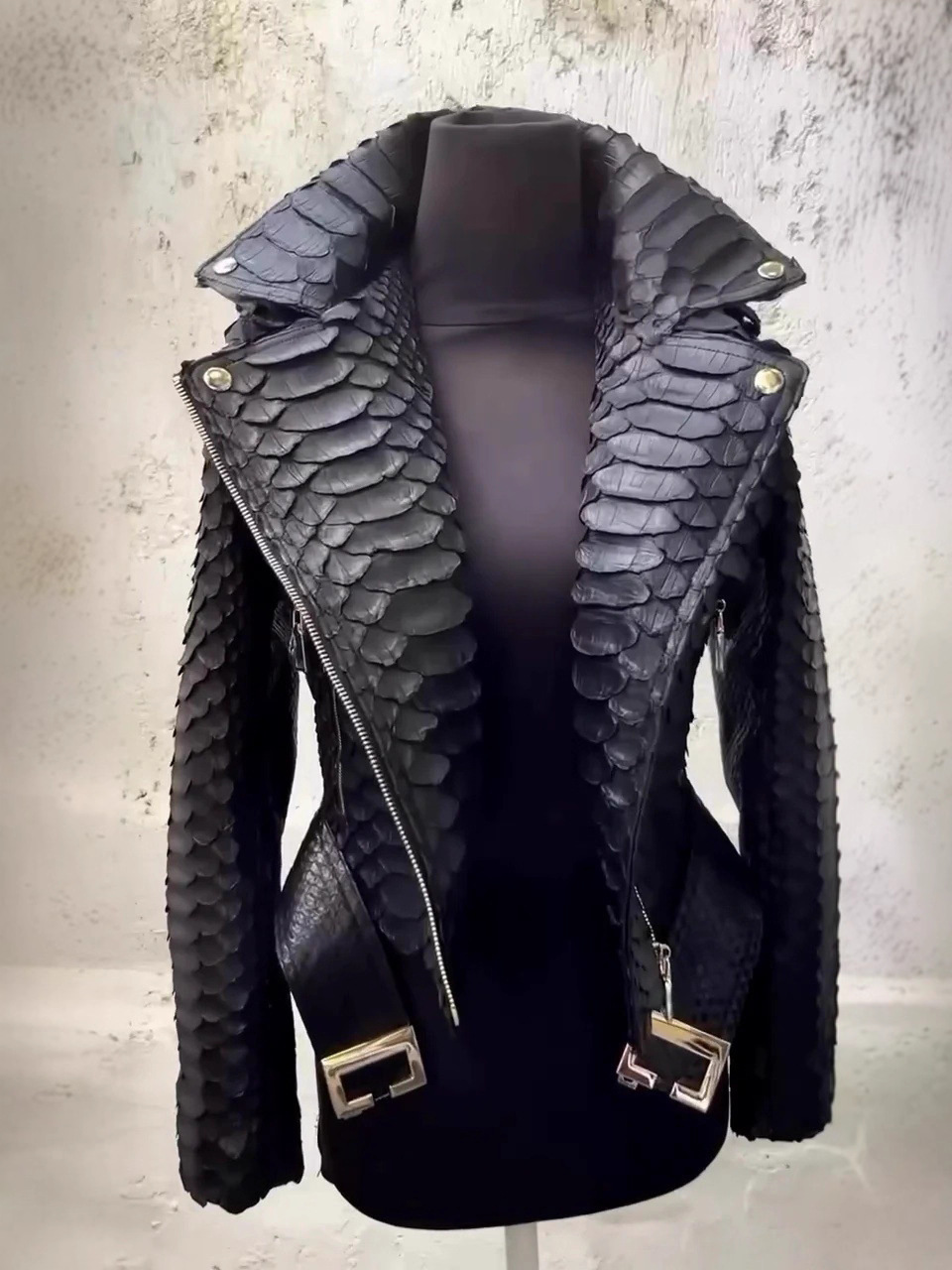 Женская куртка-косуха из искусственной кожи под змеиную кожу, черная, осенне-зимняя, для путешествий