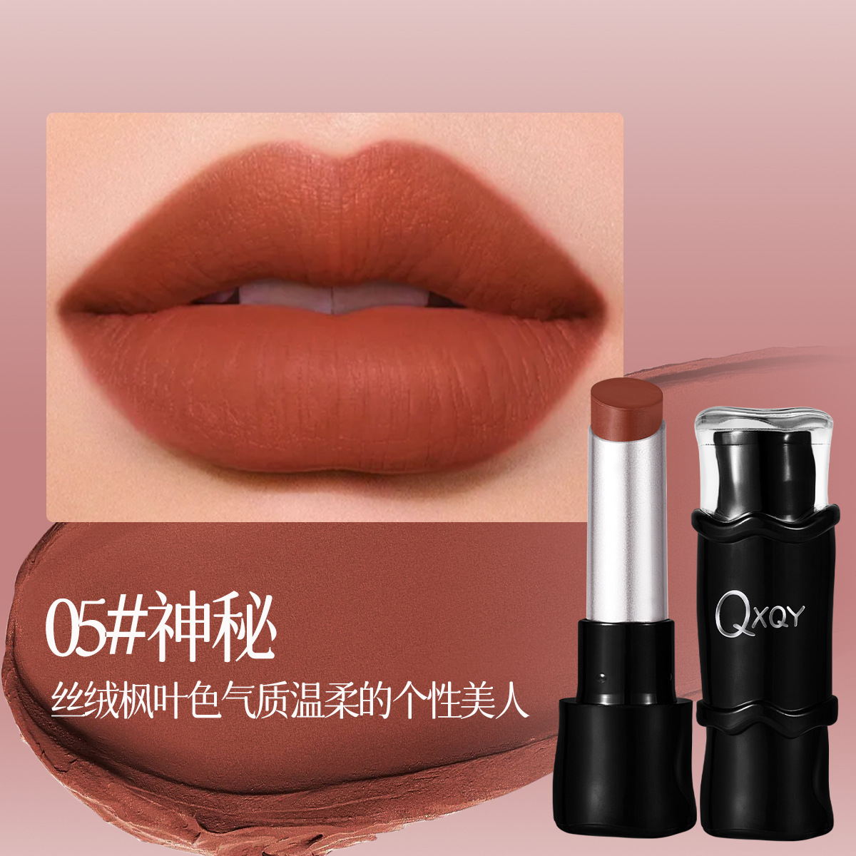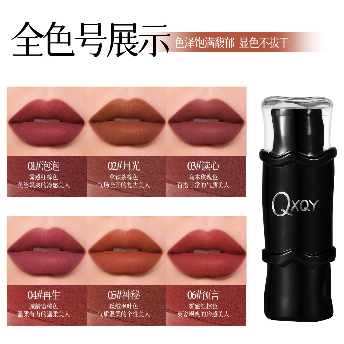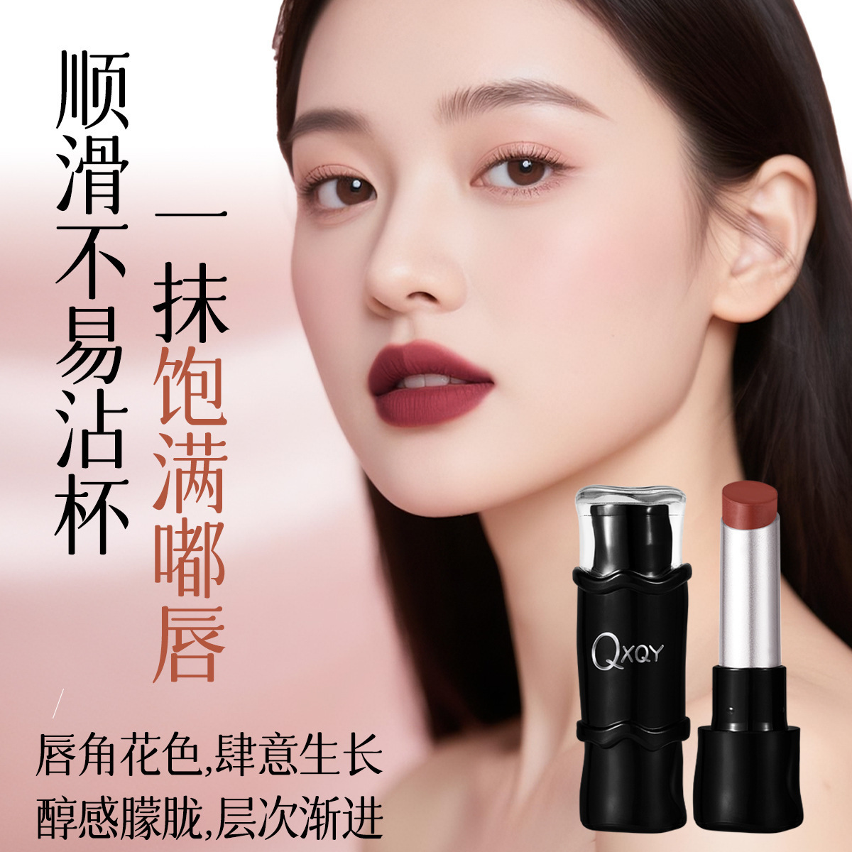 Главная страница > Легкая матовая помада QXQY, натуральная бархатистая текстура, отбеливание и улучшение элегантности, не легко прилипает к чашке, компактная и портативная помада.