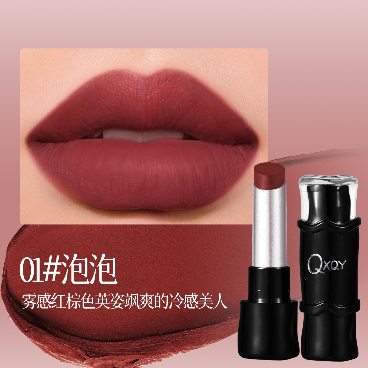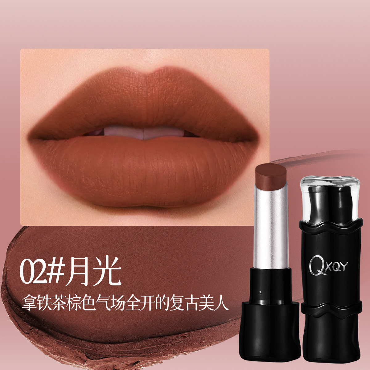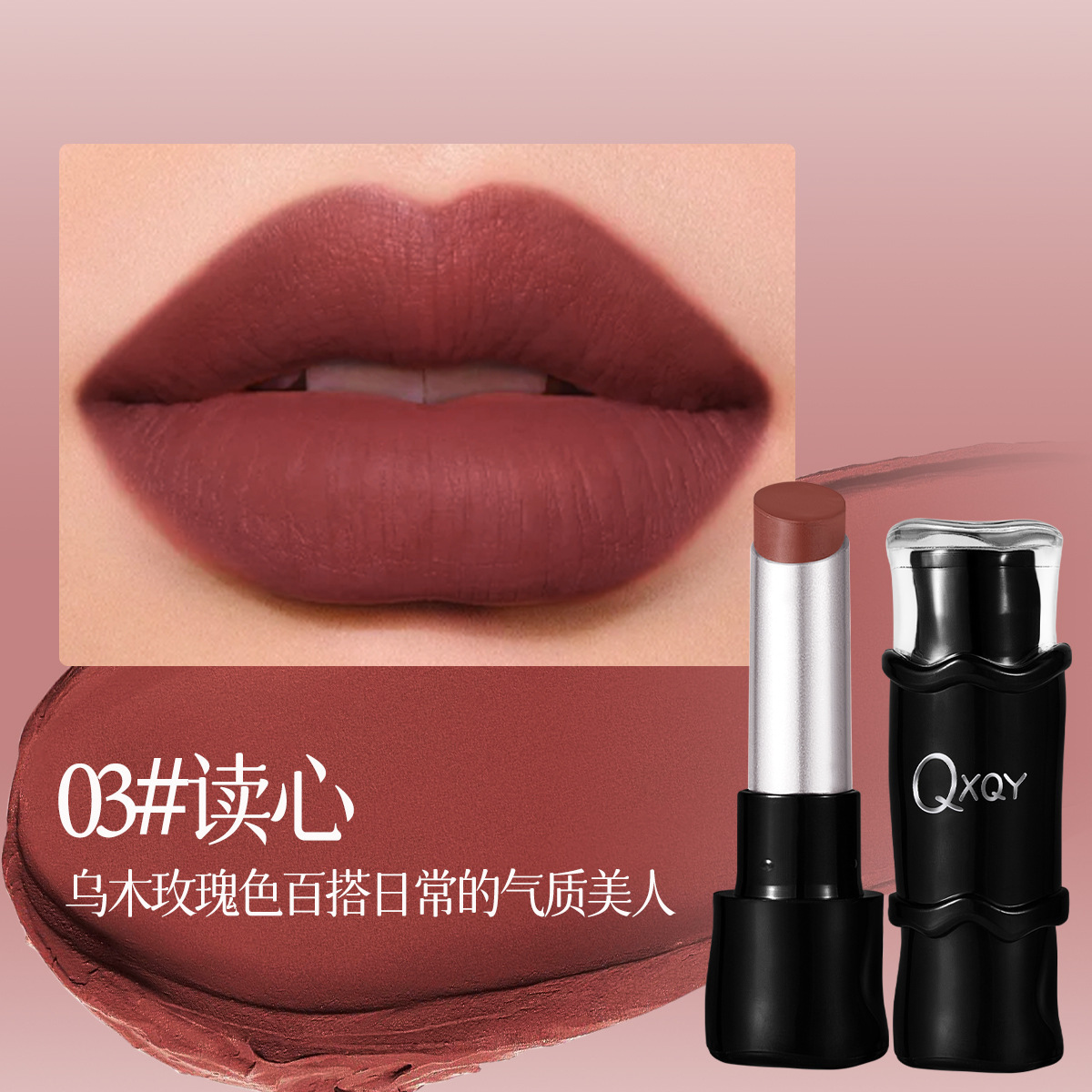 Главная страница > Легкая матовая помада QXQY, натуральная бархатистая текстура, отбеливание и улучшение элегантности, не легко прилипает к чашке, компактная и портативная помада.