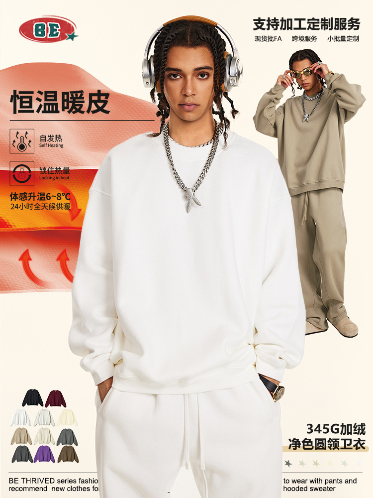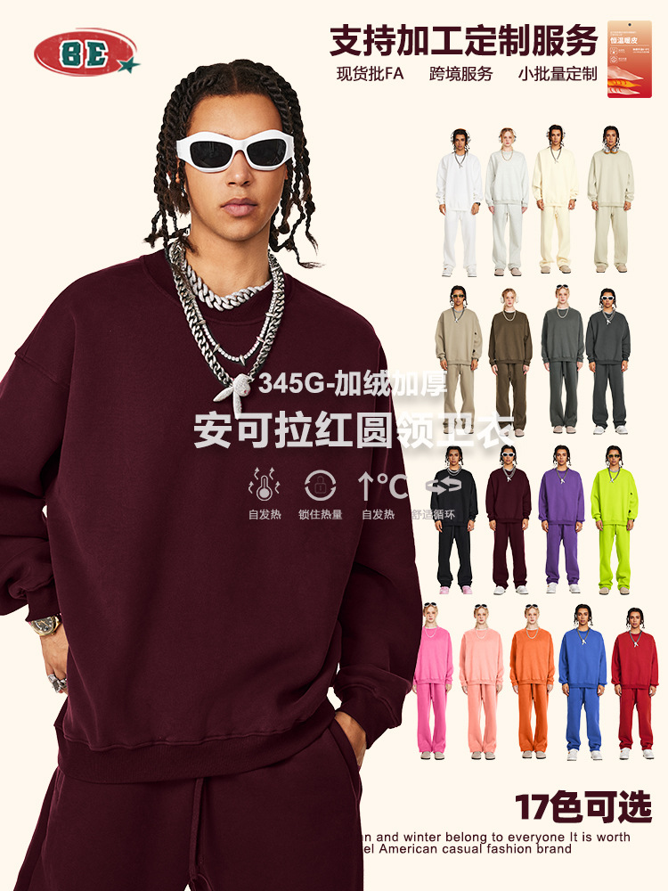 Главная страница > BE Мужская одежда | Модный брендовый осенне-зимний свободный повседневный базовый однотонный американский бархатный утолщенный свитшот с круглым вырезом для мужчин