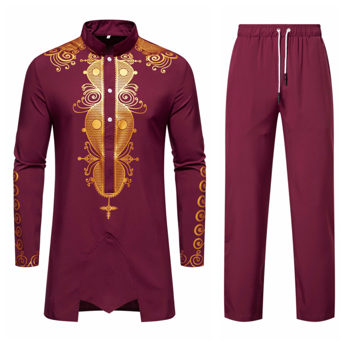 Главная страница > 2025 экспорт европейский и американский новый мужской модный этнический стиль халат печатный костюм европейский размер модный повседневный комплект из двух предметов