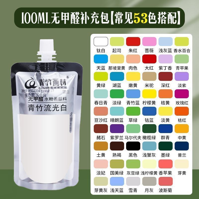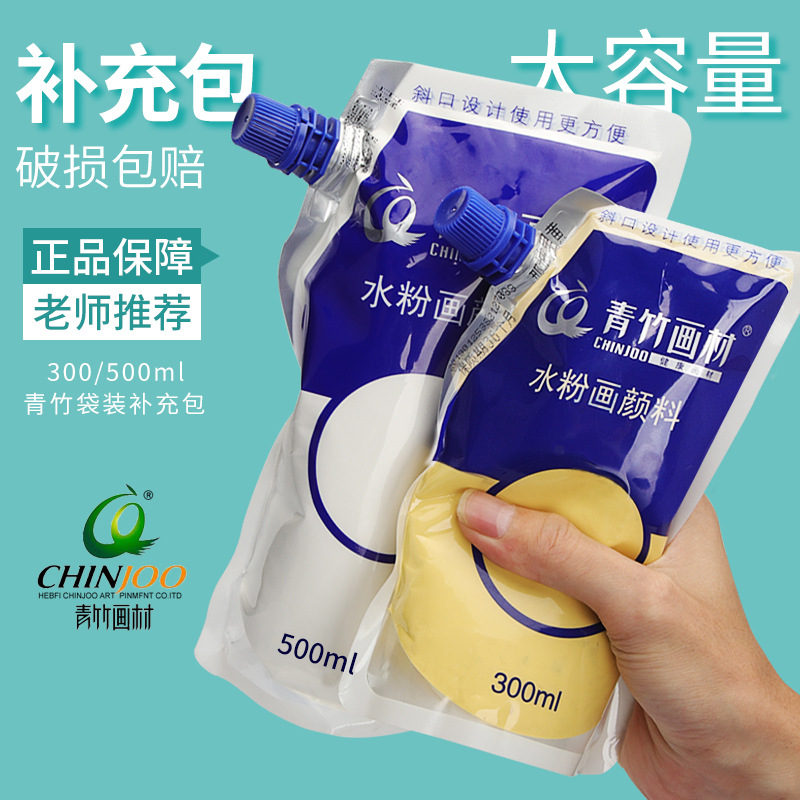 Запасная краска для гуаши из зеленого бамбука, 500 мл, сумка, запасная упаковка, 300 мл, большая сумка, краска, весенняя зеленая и белая, для студентов-художников