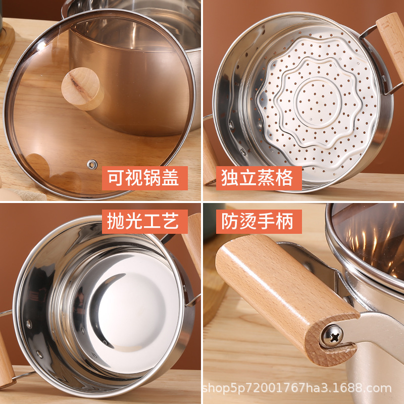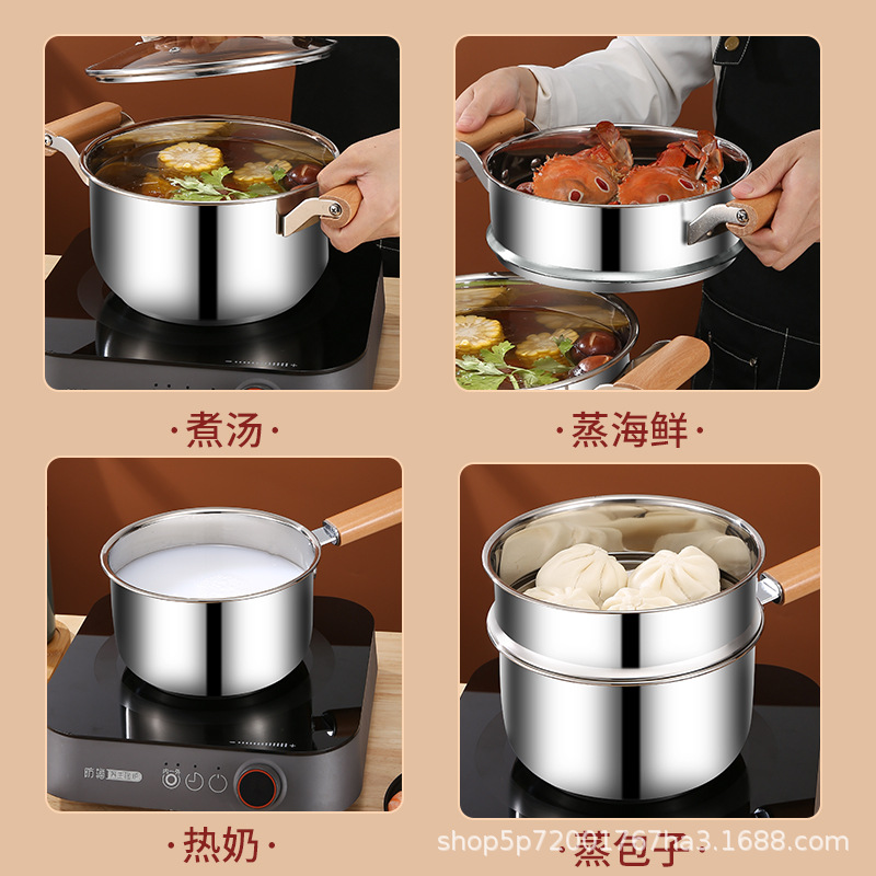 Главная страница > Немагнитная кастрюля для супа из нержавеющей стали кастрюля для тушения молока с одной ручкой утолщенная кастрюля для супа Индукционная Плита горшок для детского питания