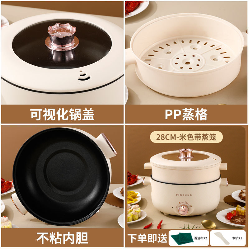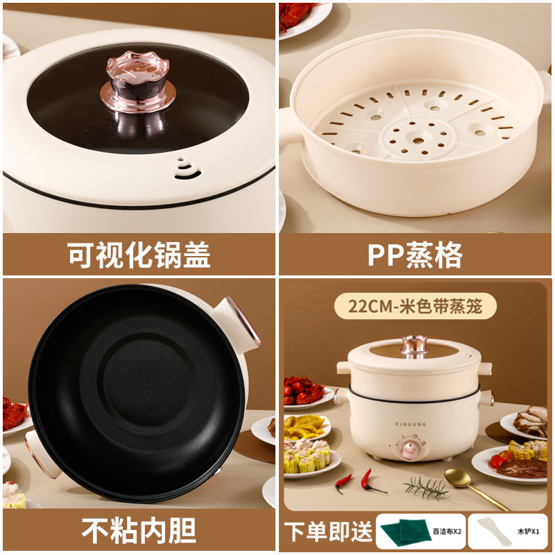 Электрическая кастрюля, многофункциональная бытовая кастрюля для приготовления лапши в общежитии, небольшая электрическая кастрюля, электрический вок, универсальная электрическая кастрюля с антипригарным покрытием для приготовления на пару и приготовления пищи