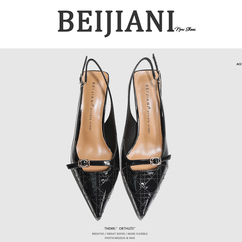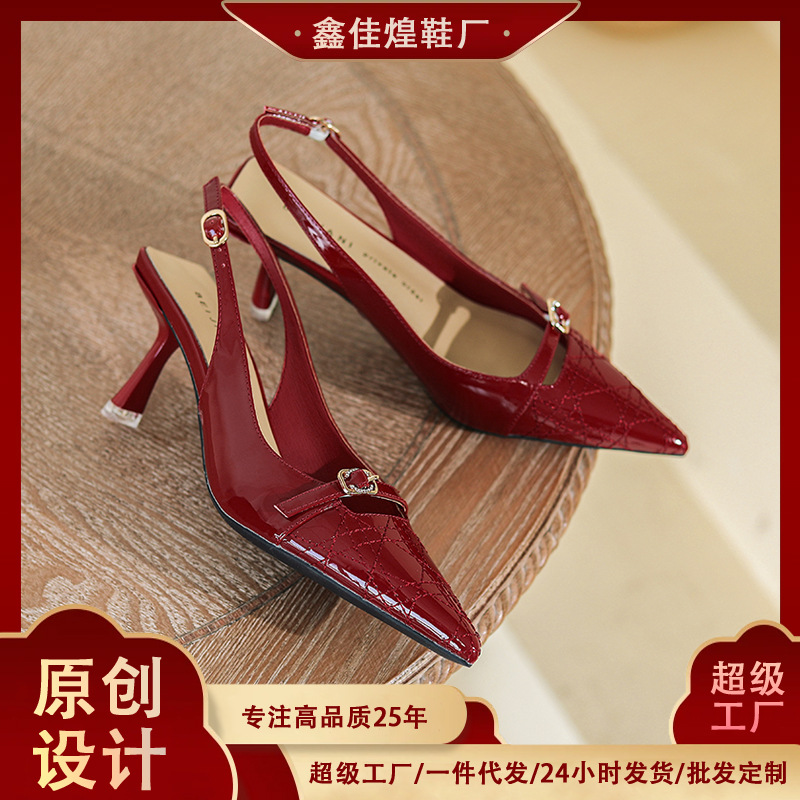 Главная страница > 276-9 Сандалии Baotou, женские туфли на высоком каблуке-шпильке с острым носком, лакированная кожа, ниша из овчины, ремешок сзади, новинка 2025, стиль