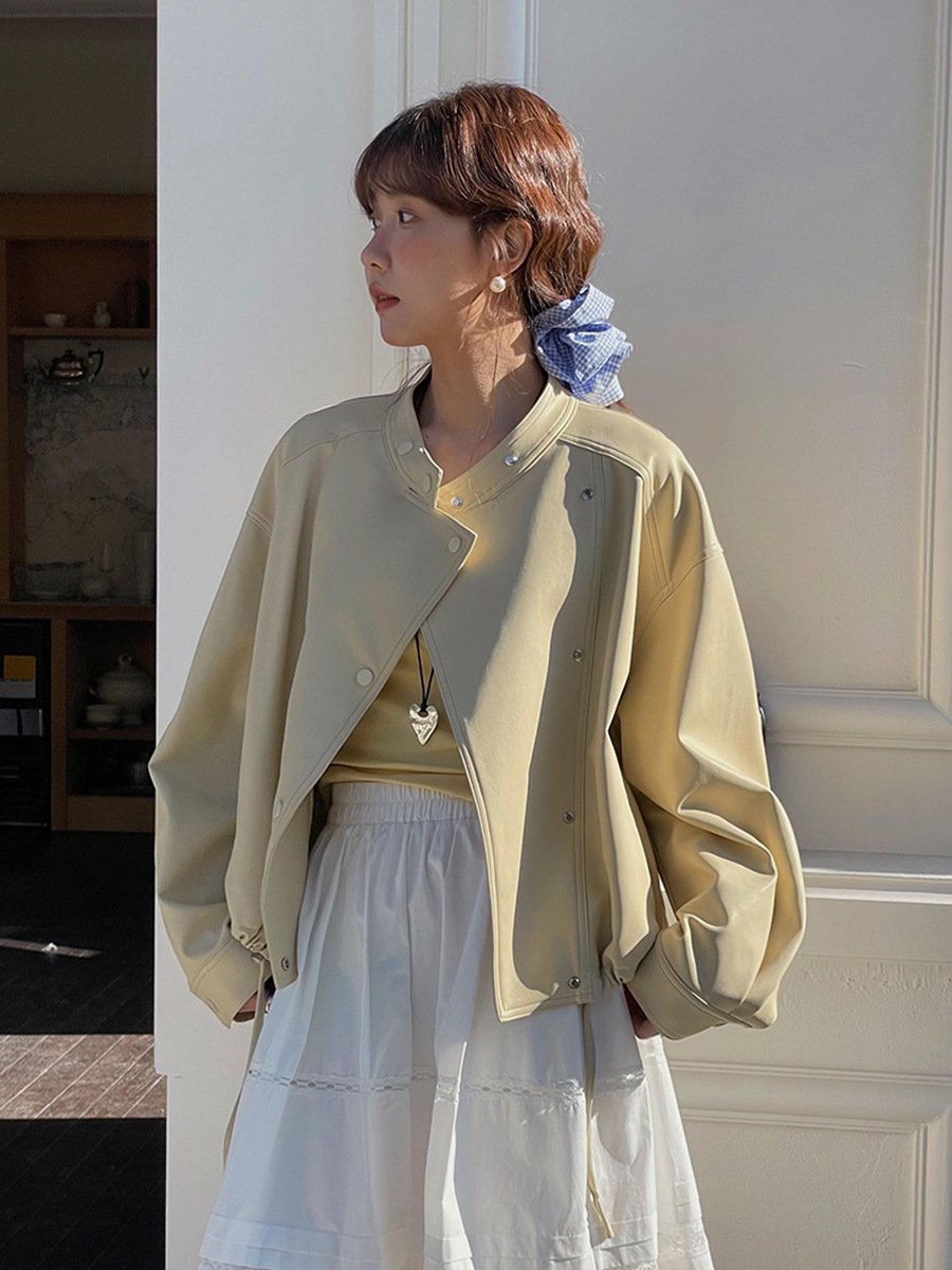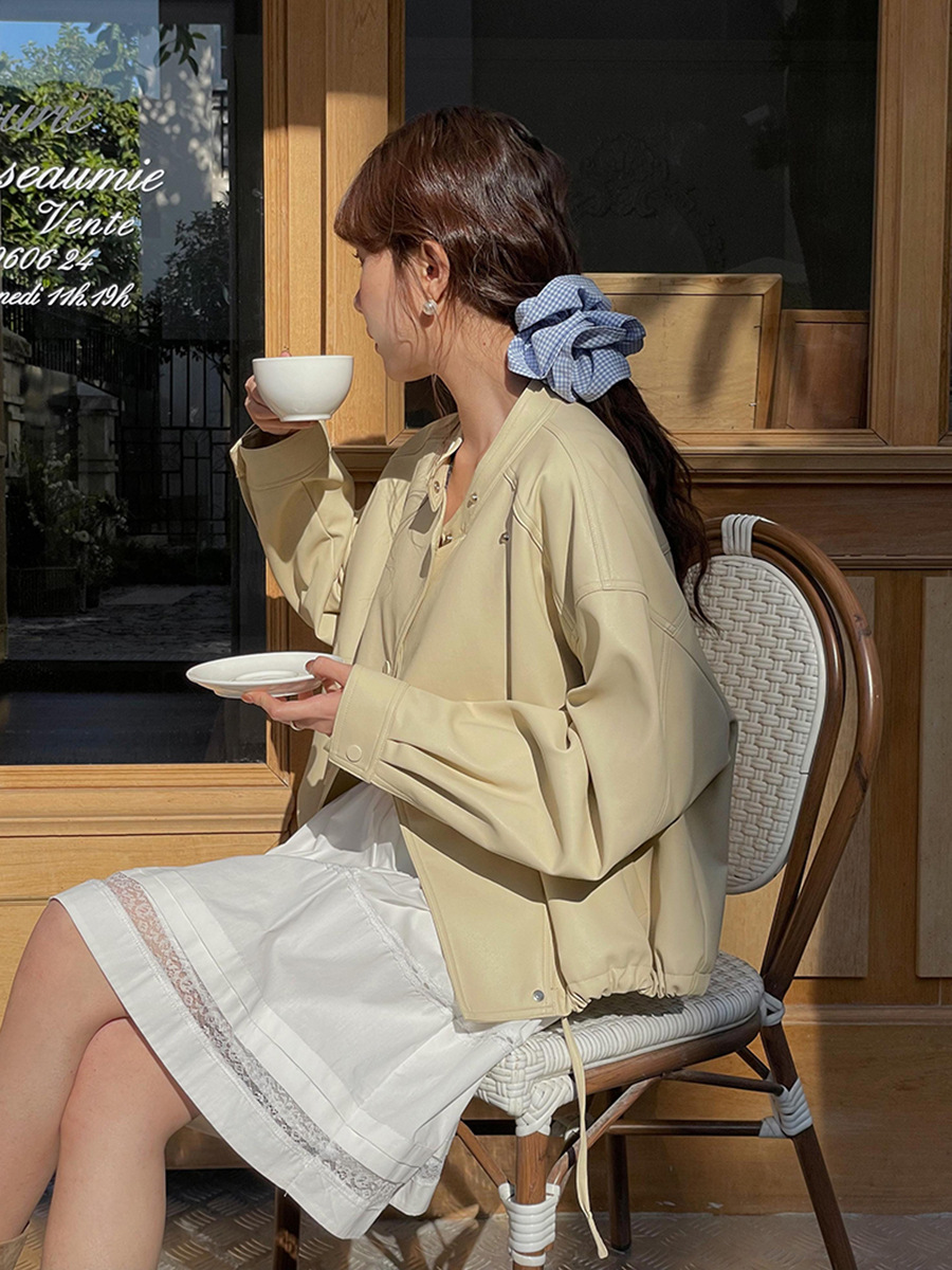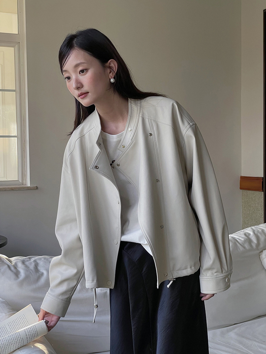 Главная страница > [Geming] Корейская кожаная куртка с воротником-стойкой, женская осенняя новая мотоциклетная куртка в стиле ретро, короткая куртка W733B
