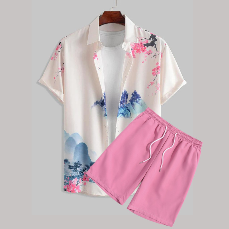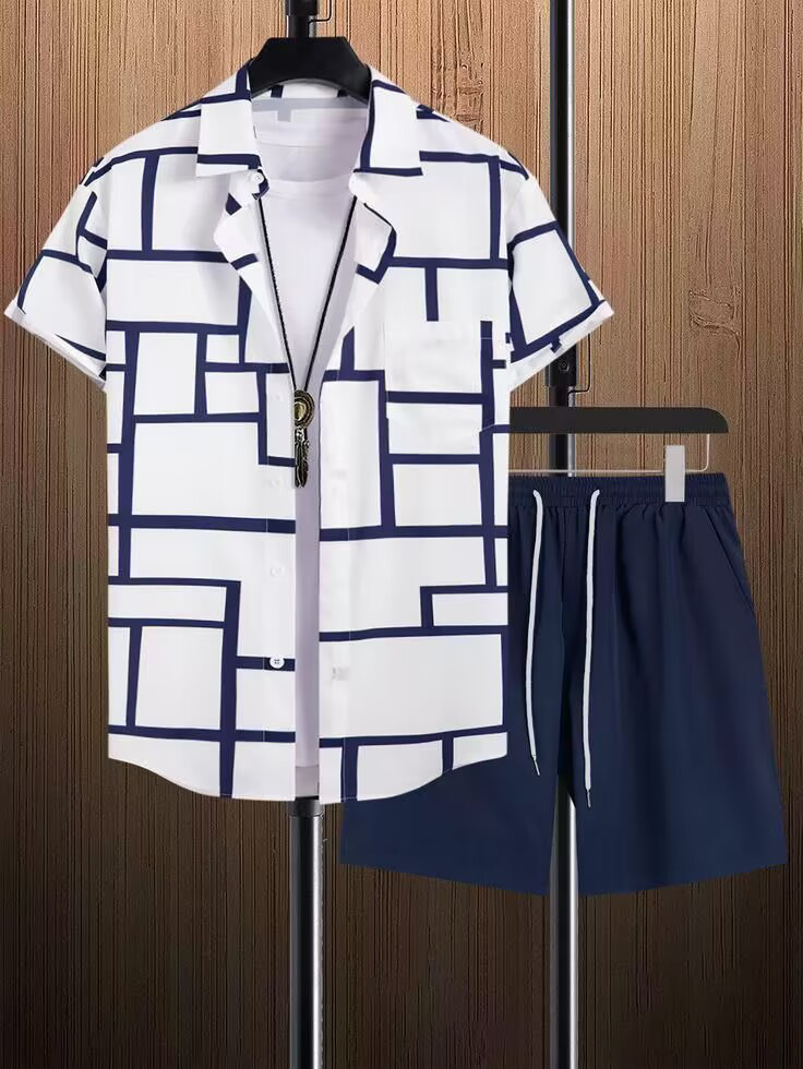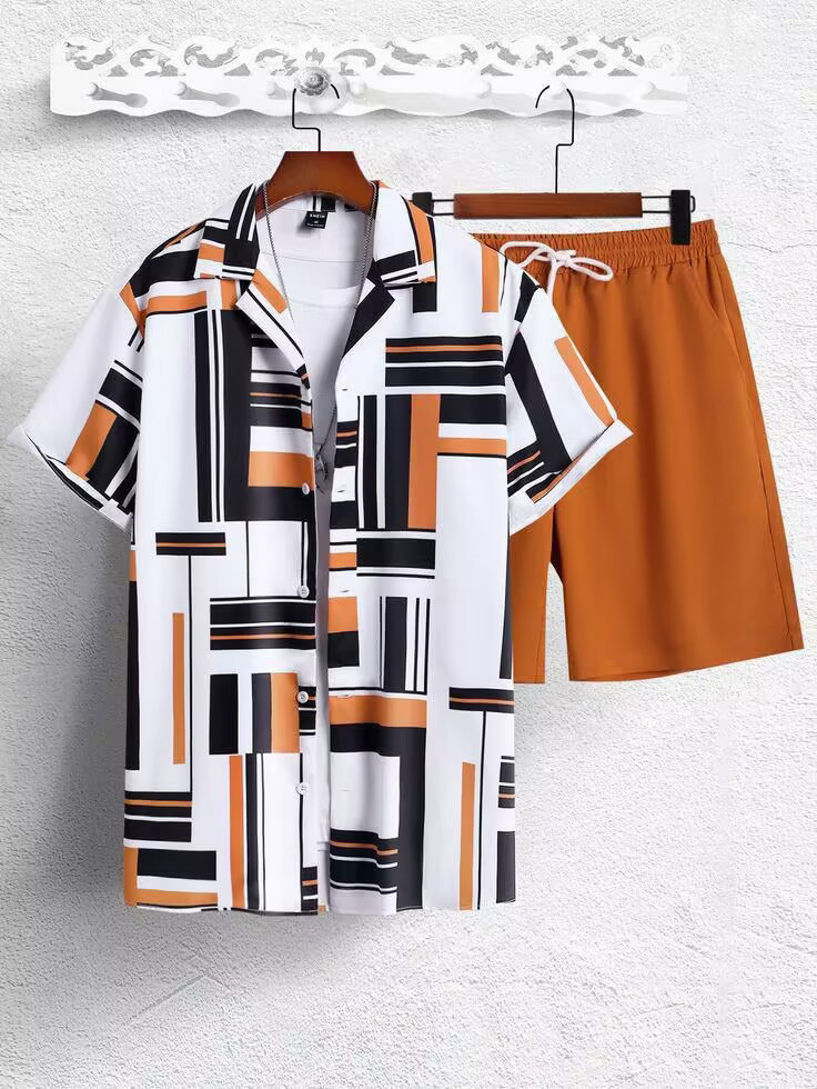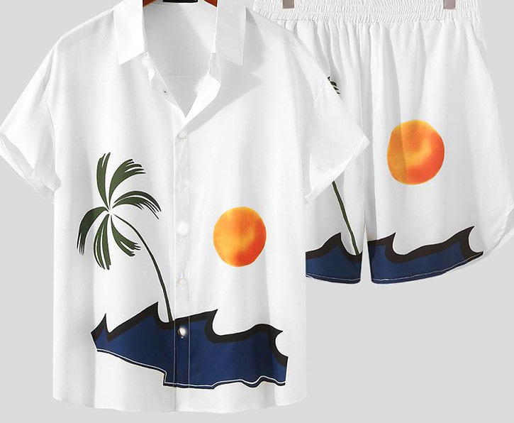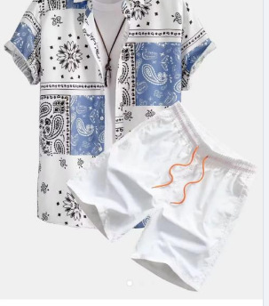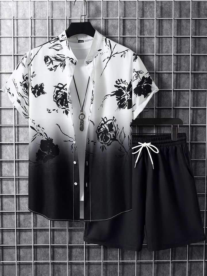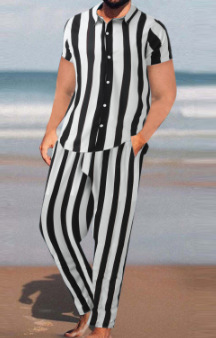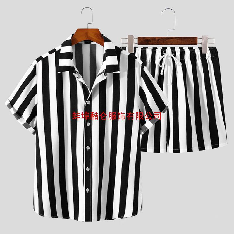 Главная страница > Трансграничный мужской 2023 Amazon Летний Новый Уличный хипстерский черно-белый полосатый Гавайский пляжный костюм мужской