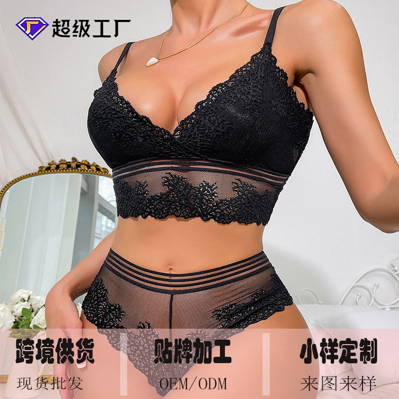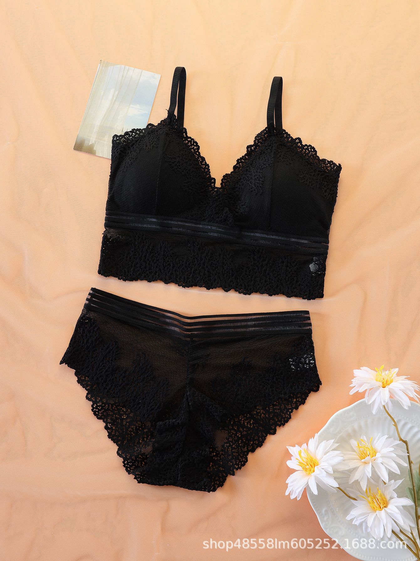 Трансграничные европейские и американские французские сексуальные кружевные бюстгальтеры с полой красивой спиной комфорт подтяжка нижнее белье трусы TEMU