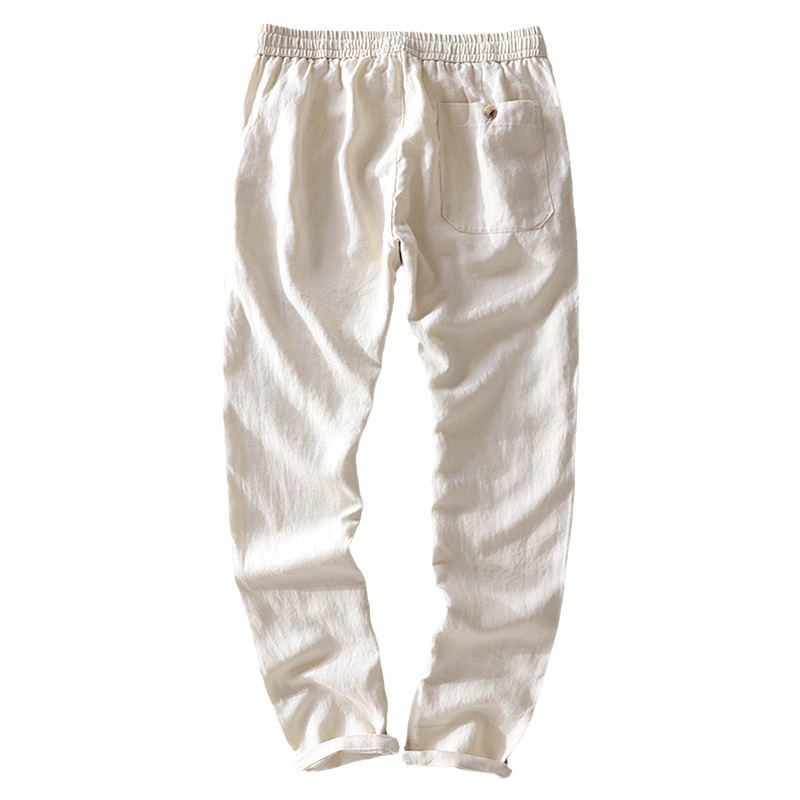Главная страница > Пляжные льняные повседневные брюки с эластичной талией, мужские прямые тонкие хлопковые льняные мужские брюки 7409