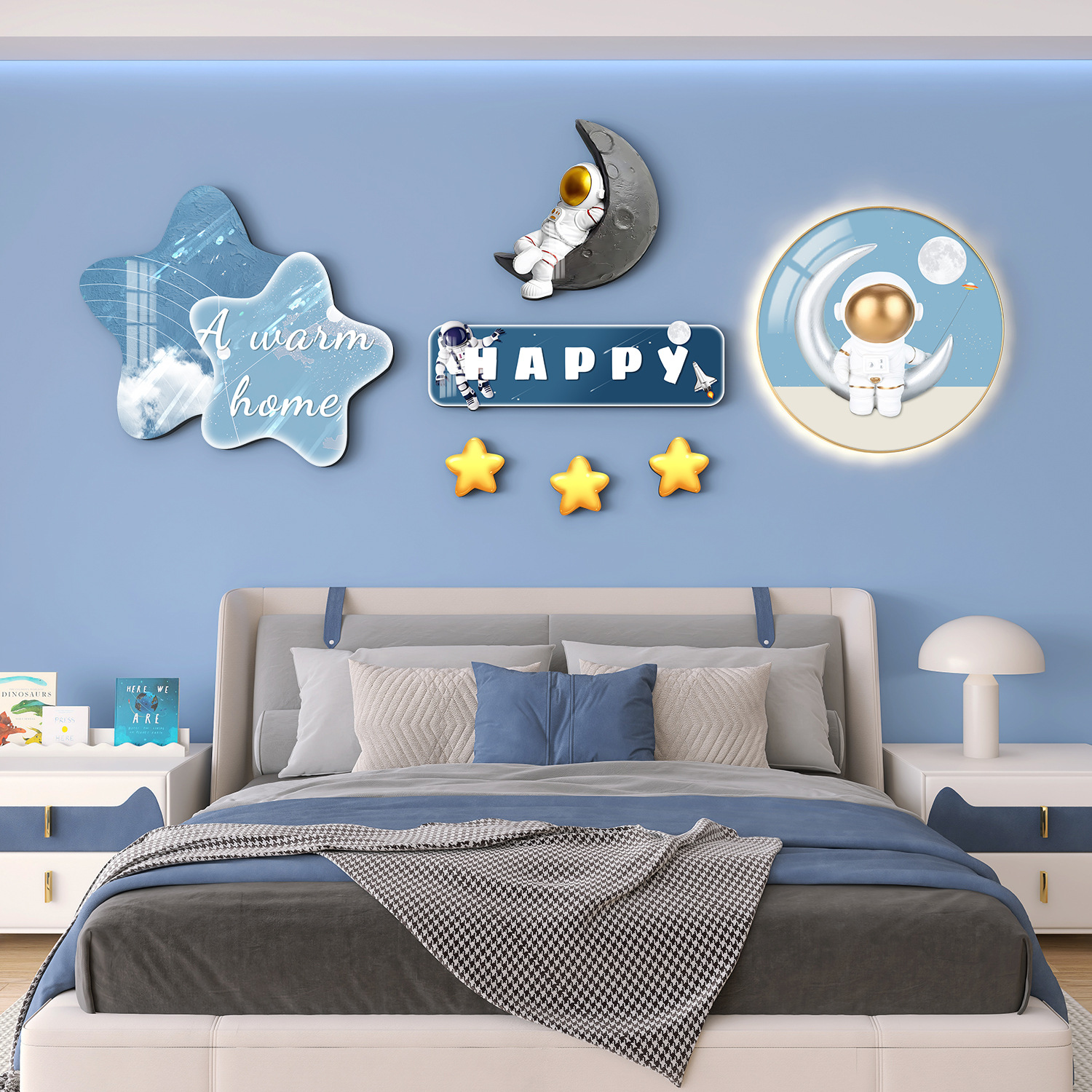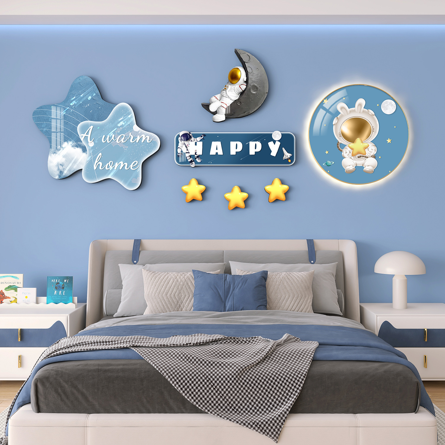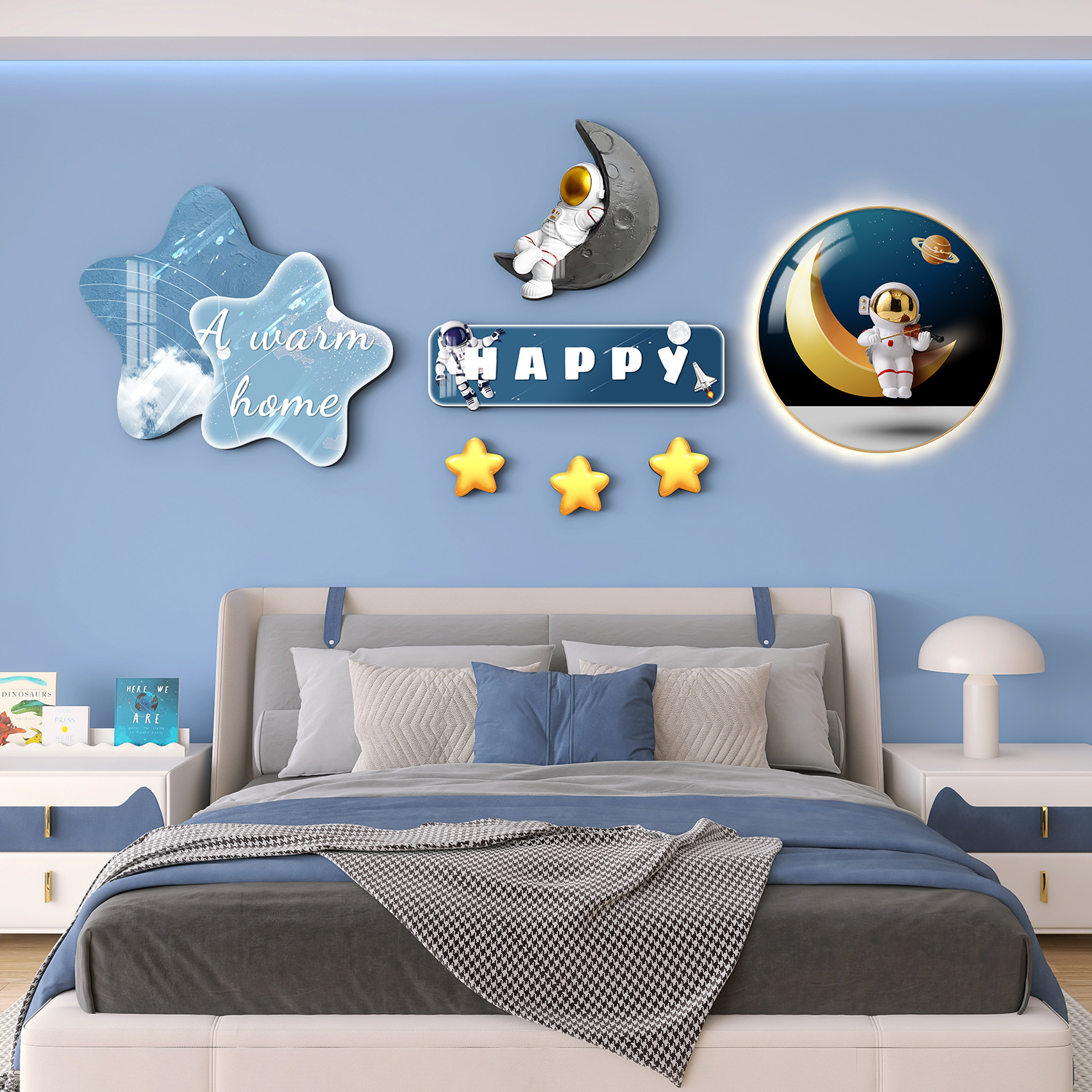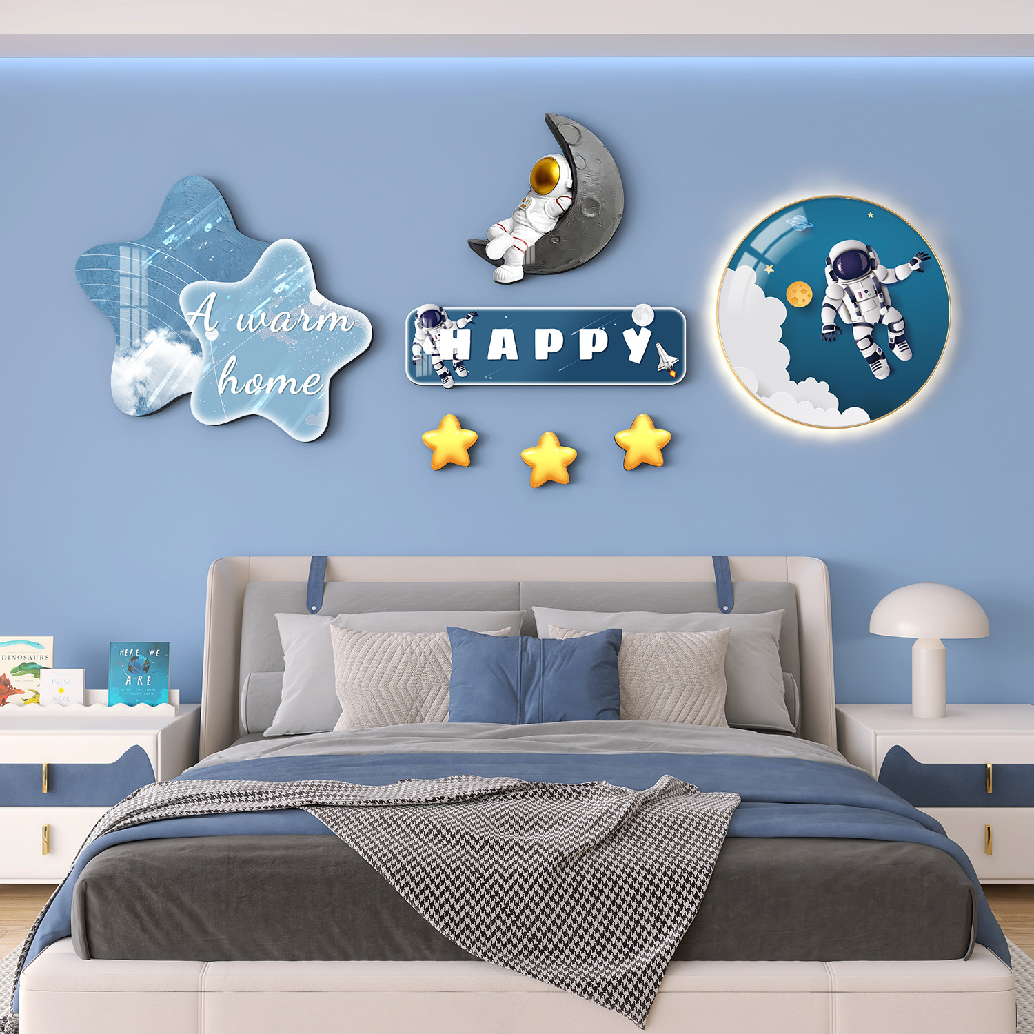 Главная страница > Мультяшный мальчик девочка детская комната декоративная роспись принцесса спальня висит на кровати задняя стена фреска космонавта
