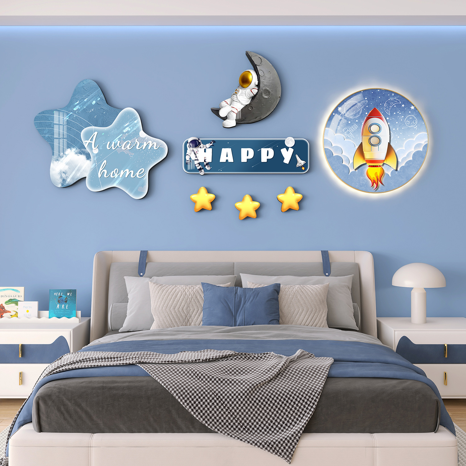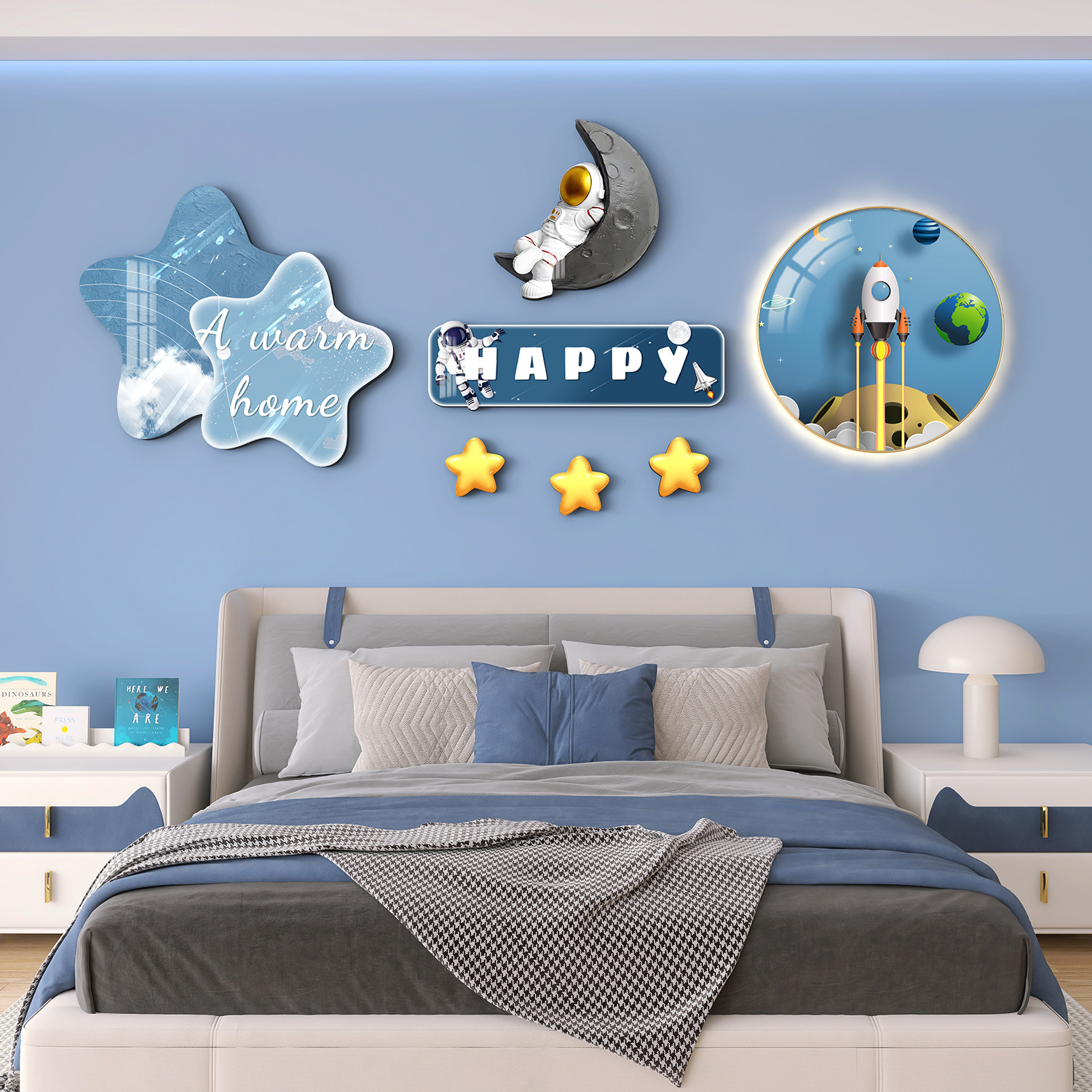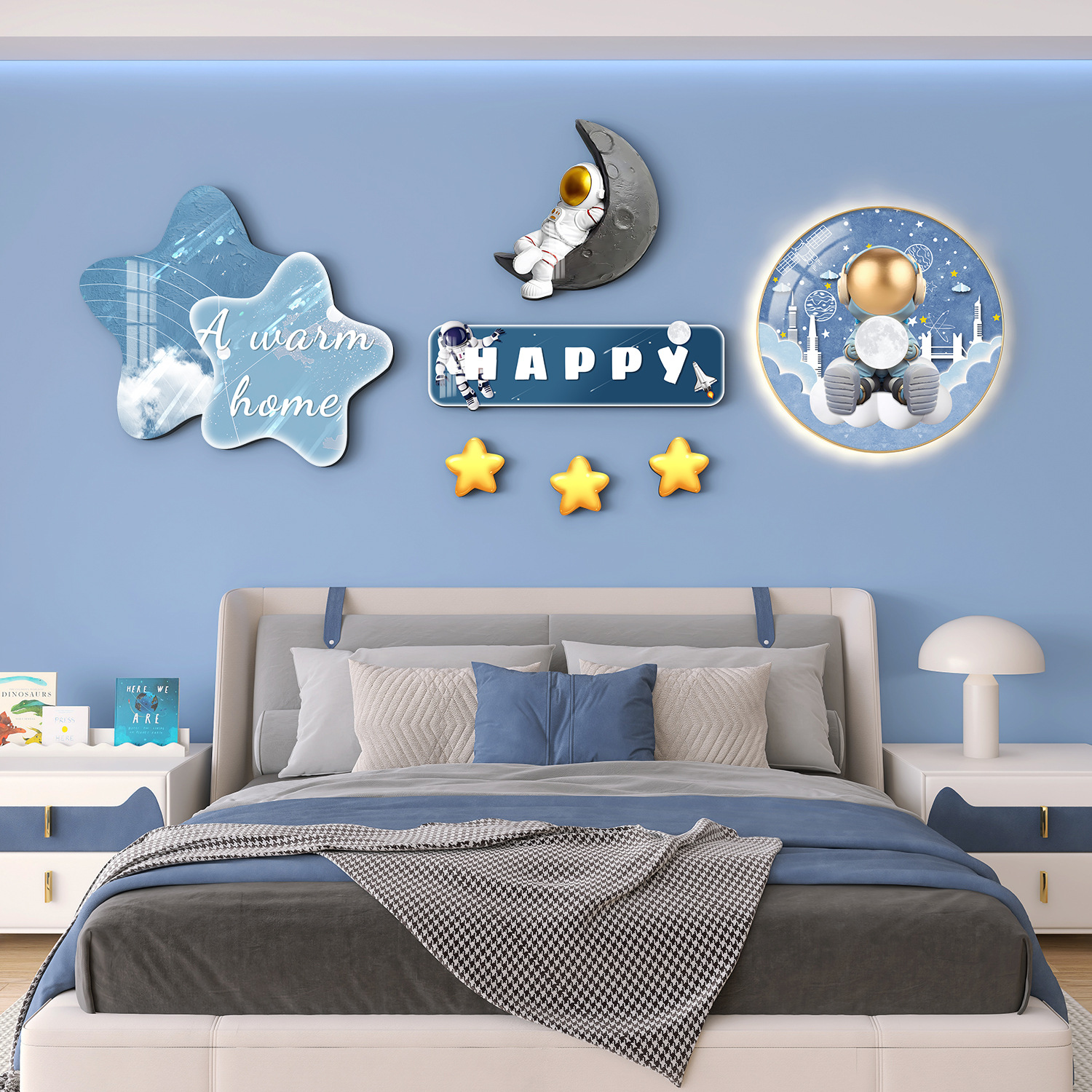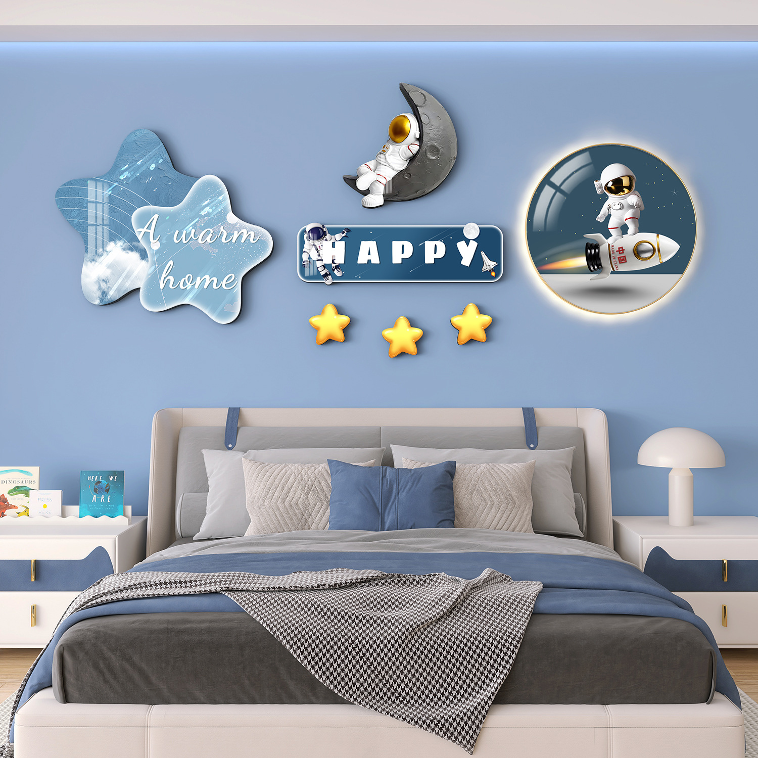 Главная страница > Мультяшный мальчик девочка детская комната декоративная роспись принцесса спальня висит на кровати задняя стена фреска космонавта