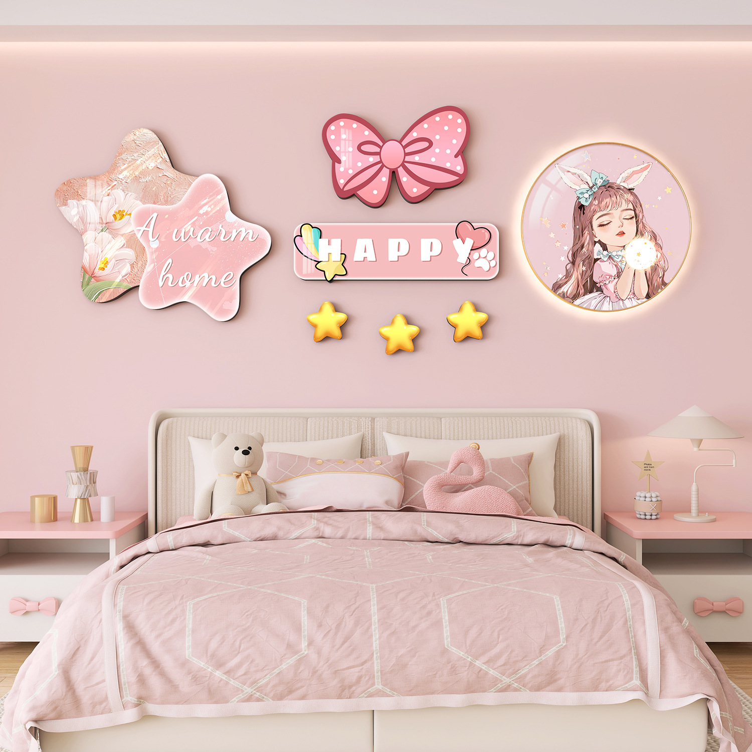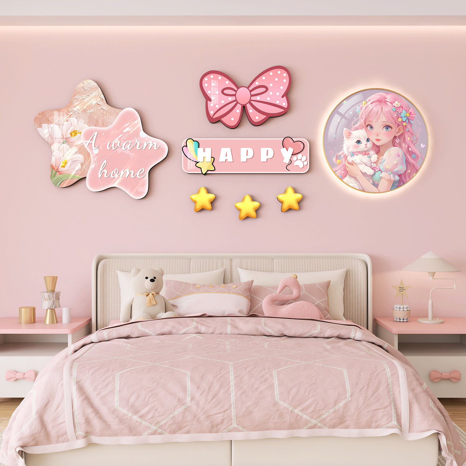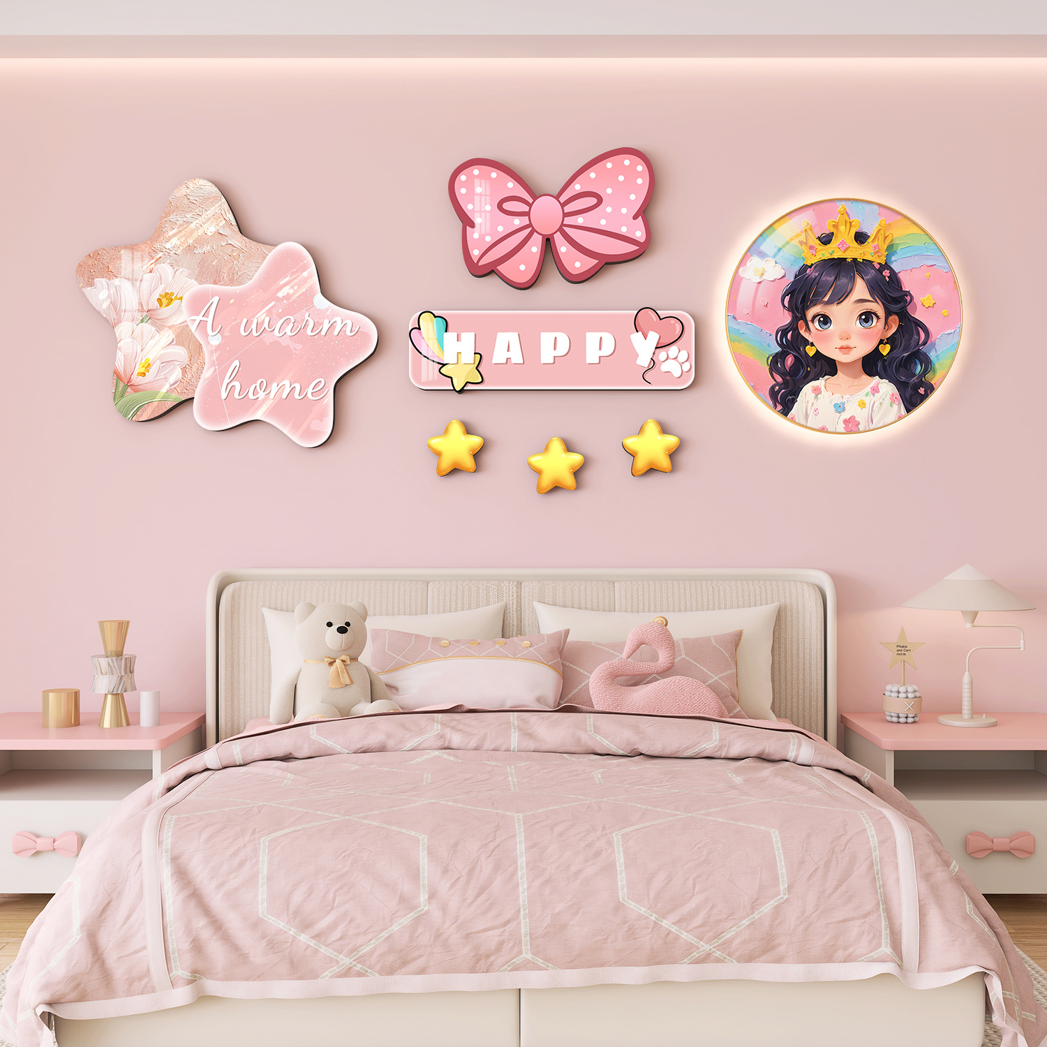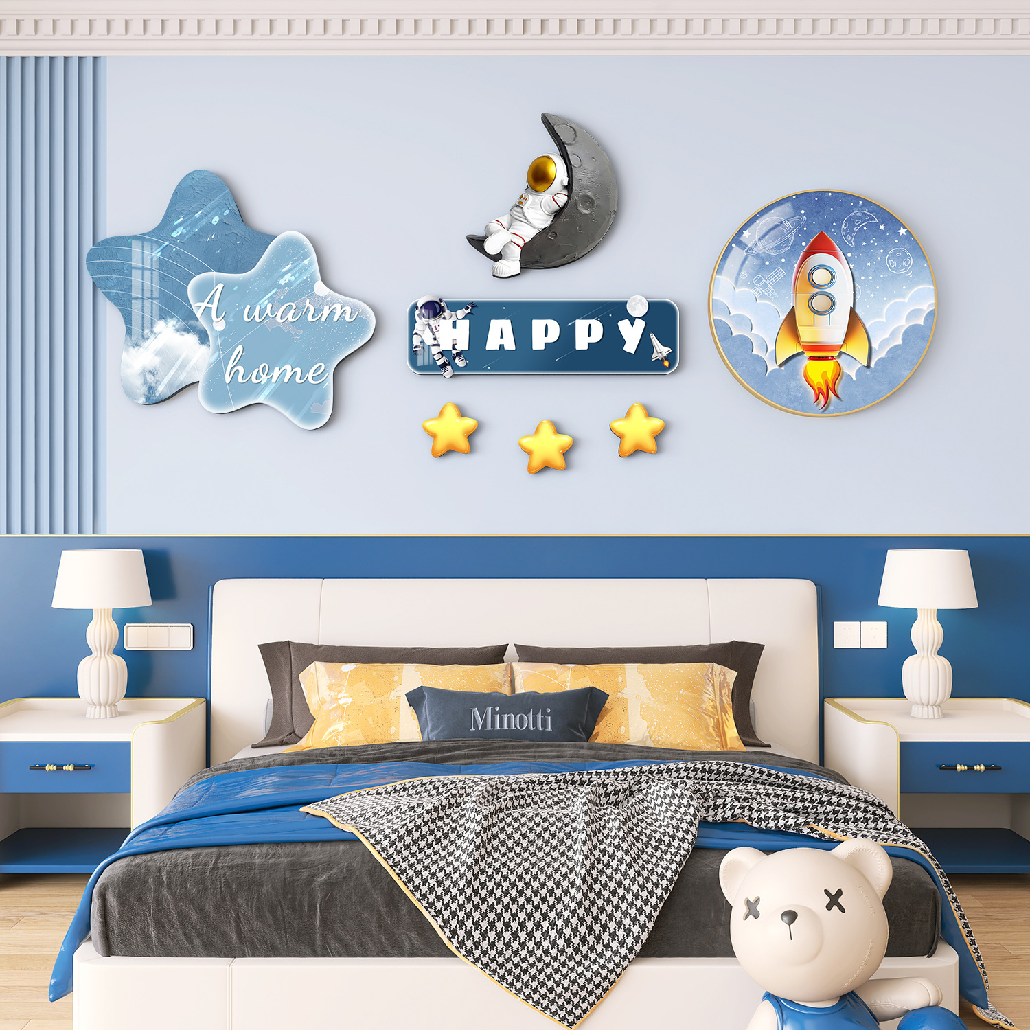Главная страница > Мультяшный мальчик девочка детская комната декоративная роспись принцесса спальня висит на кровати задняя стена фреска космонавта