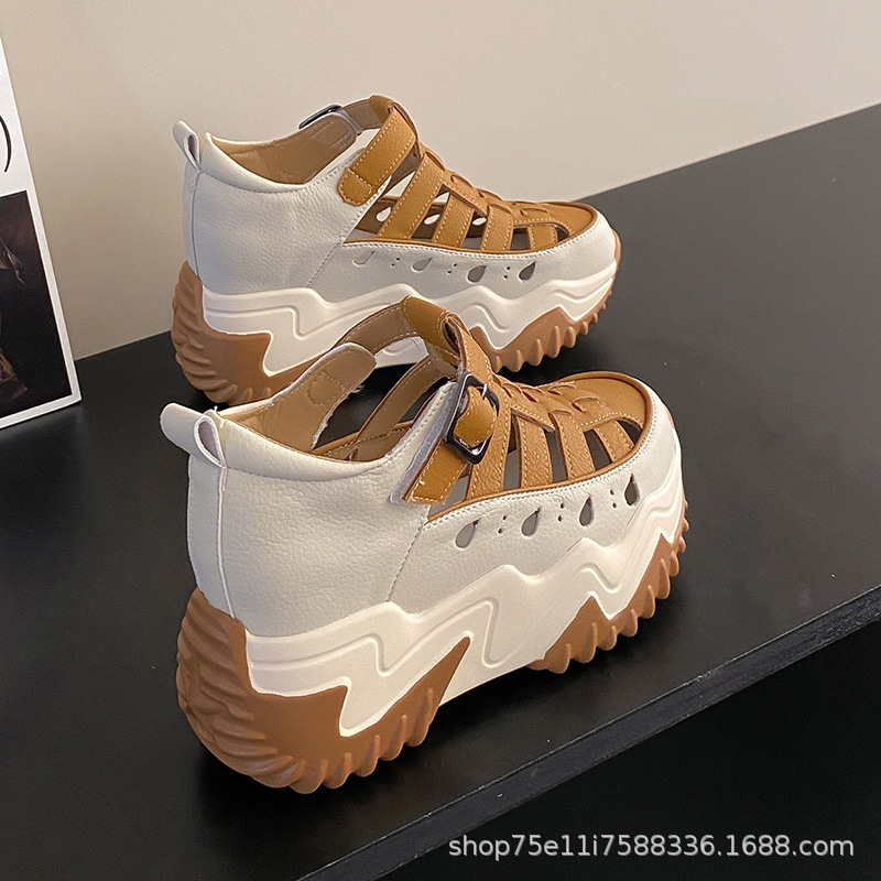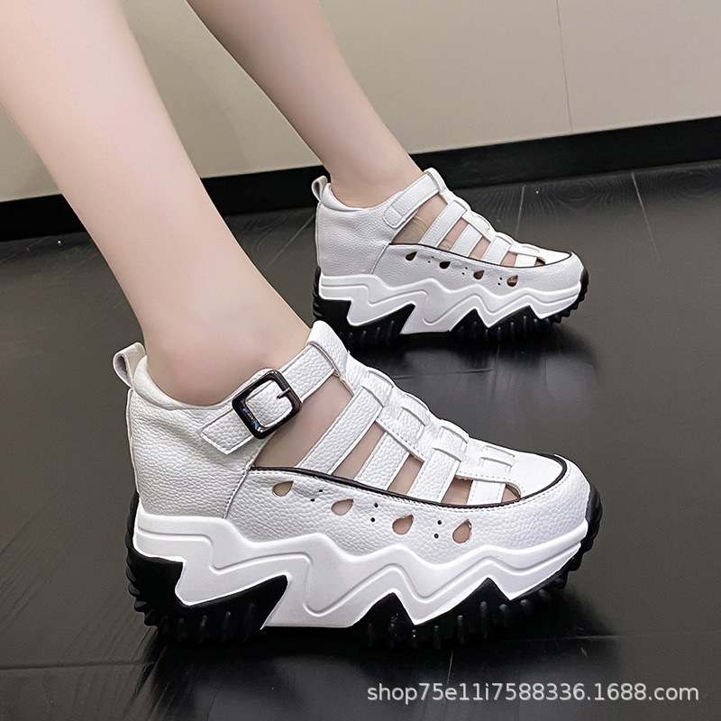 Главная страница > Женская обувь скрытого роста, полые сандалии, 2024 летние новые универсальные дышащие повседневные туфли на толстой подошве, низкие кроссовки, прилив