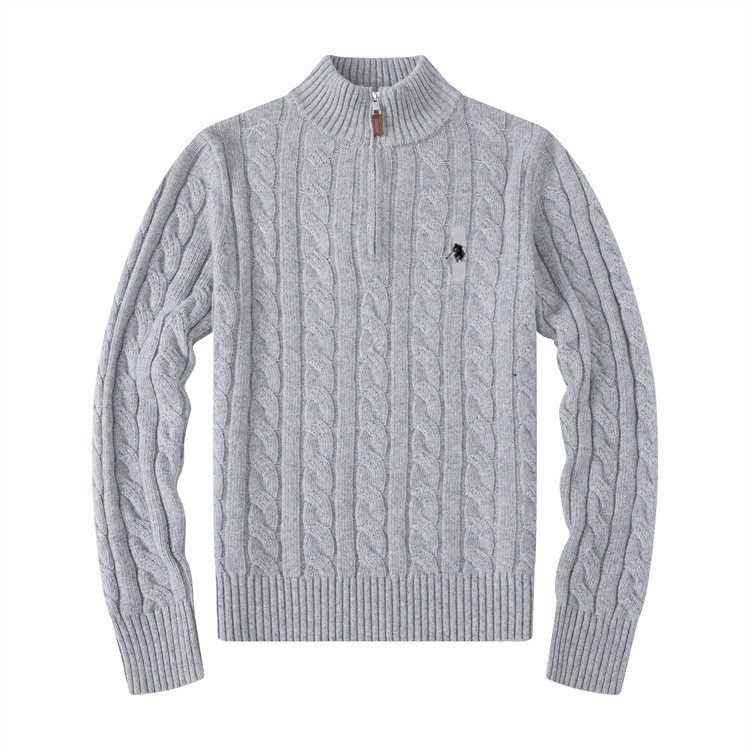 Главная страница > Классический оригинальный стандартный мужской трикотаж ПОЛО с пони, осенне-зимний утолщенный трикотаж с воротником-стойкой и полувысокой молнией, витой трикотаж