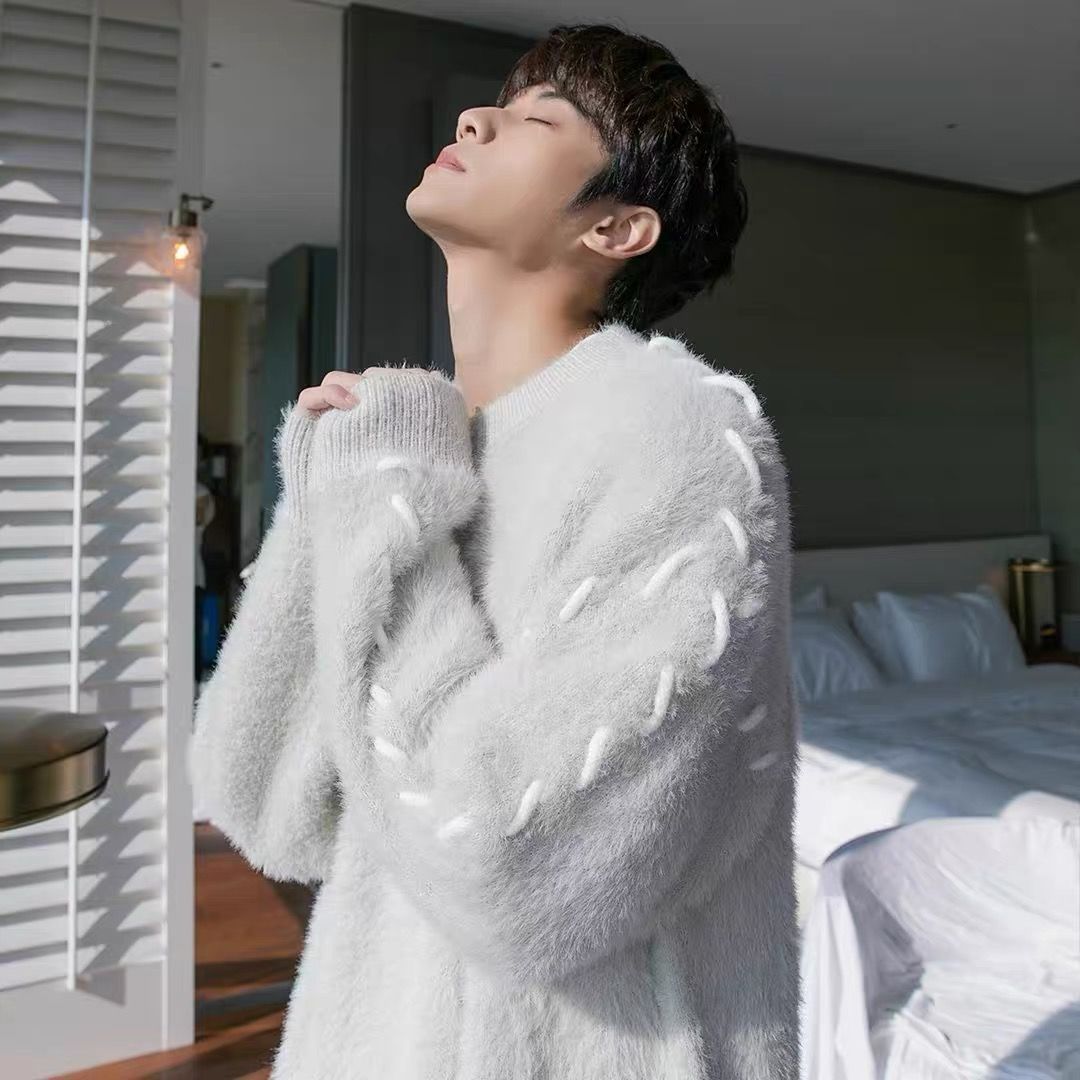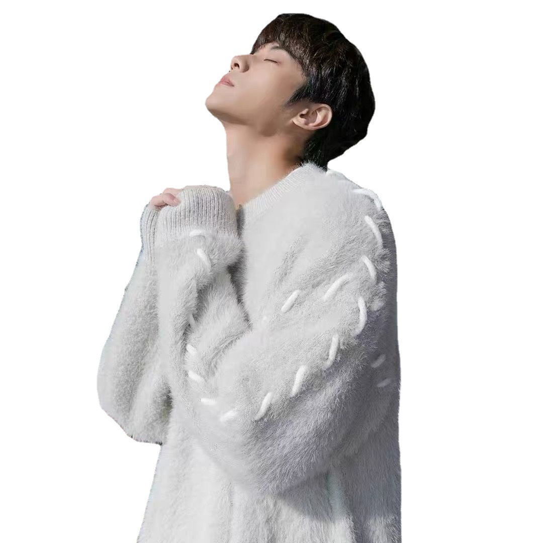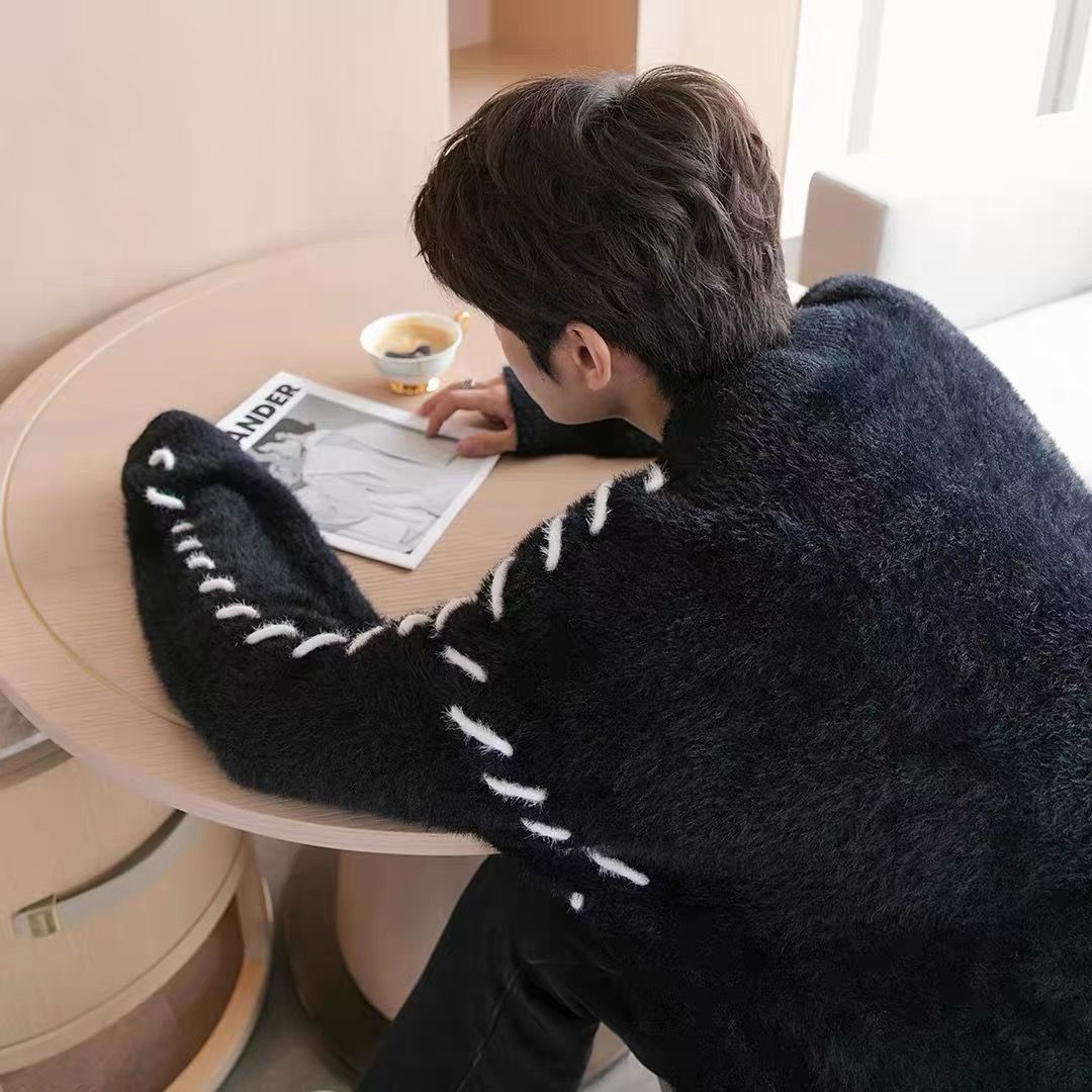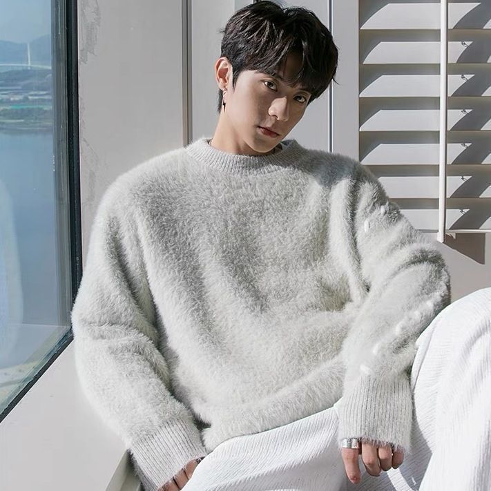 Главная страница > Тяжелый свитер мужской свободный свитер с круглым вырезом