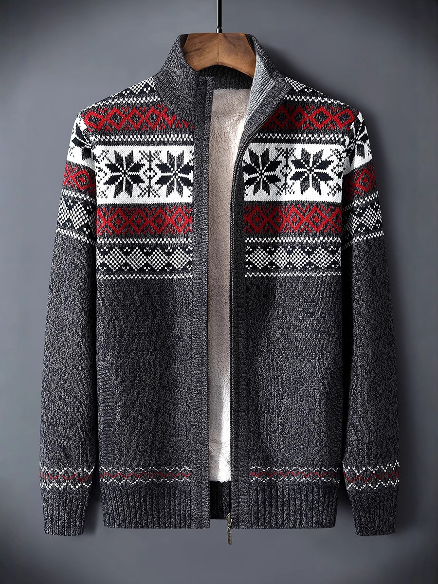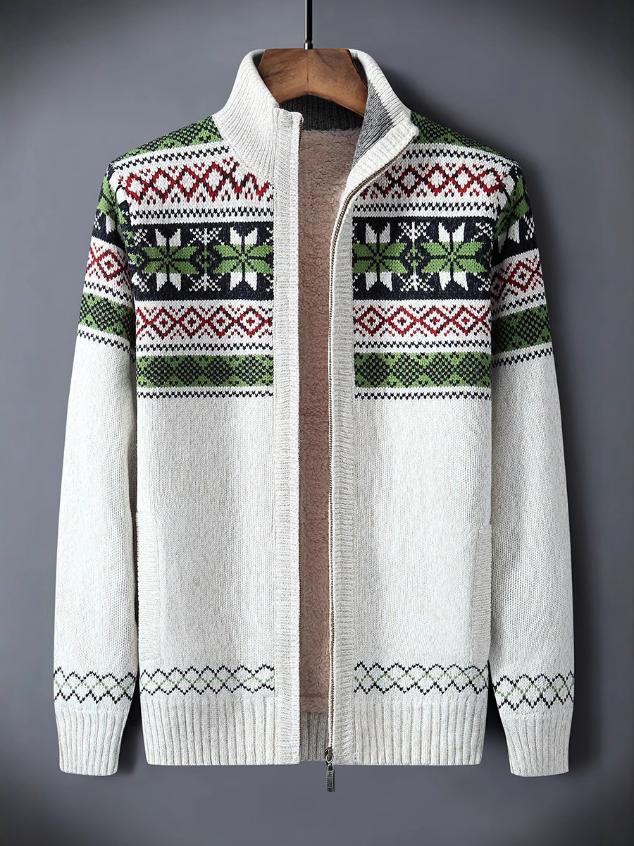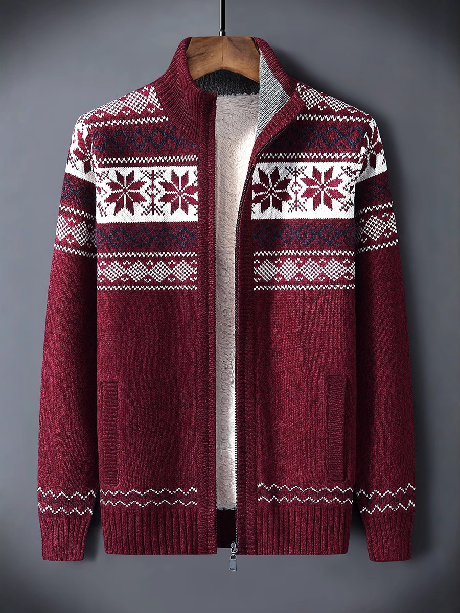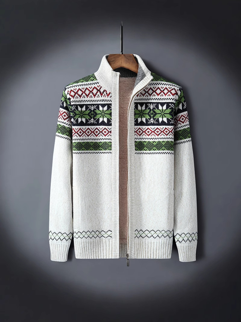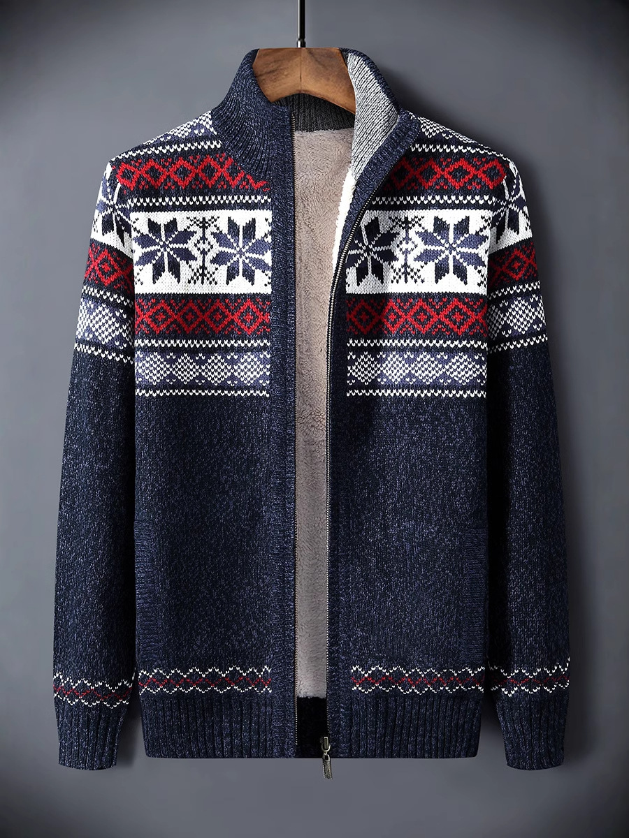 Главная страница > Осень-зима 2023, новый утолщенный кардиган большого размера, жаккардовый бархатный свитер контрастного цвета, мужская повседневная куртка