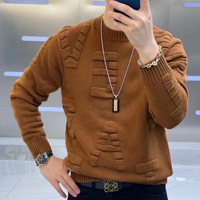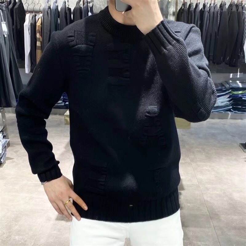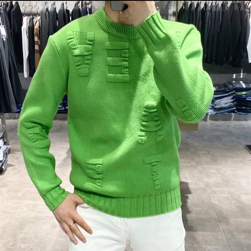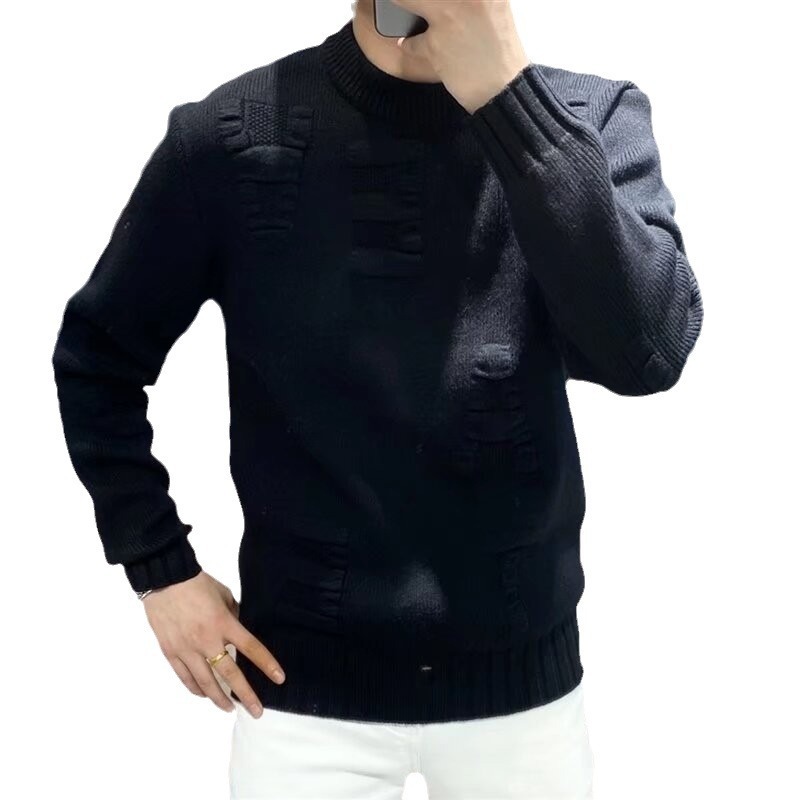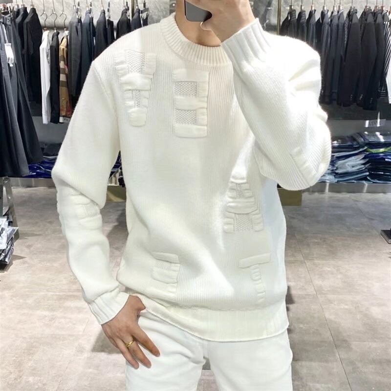 Главная страница > Осенне-зимний мужской стильный жаккардовый пуловер с объемными буквами, однотонный топ с длинными рукавами