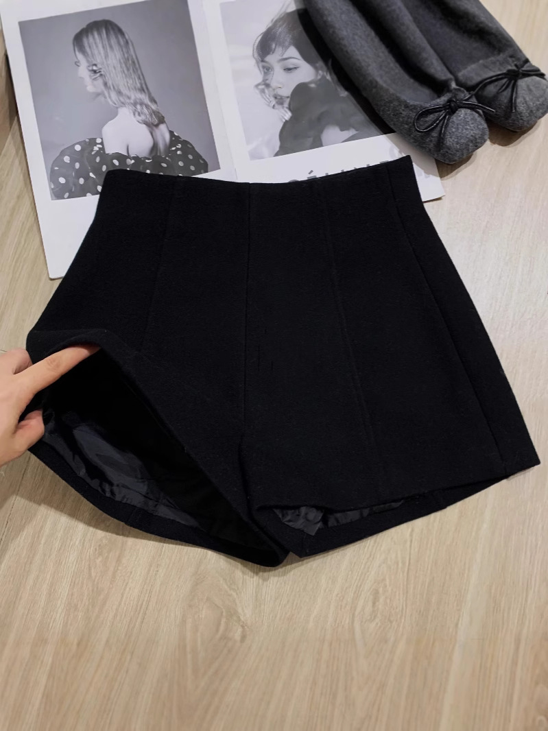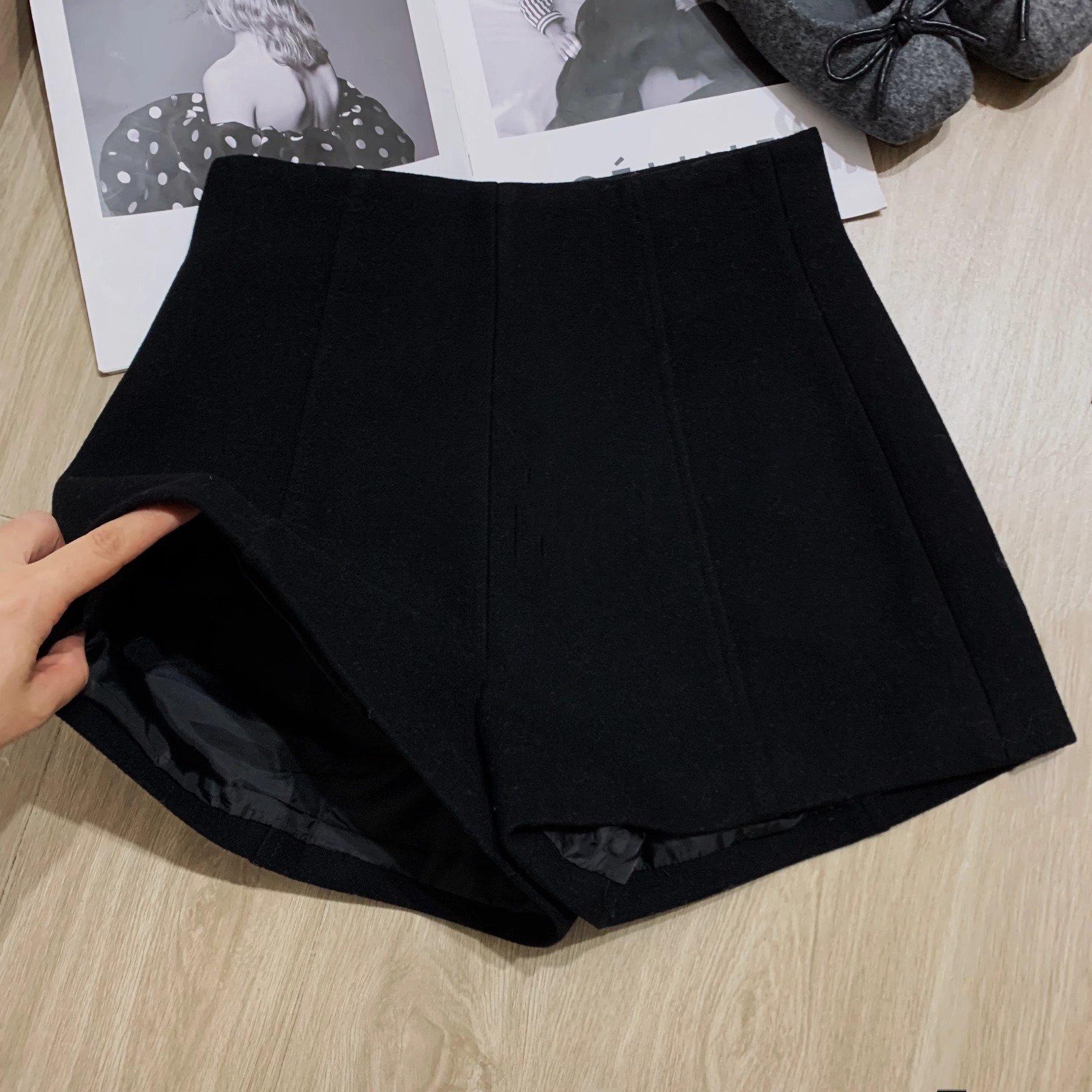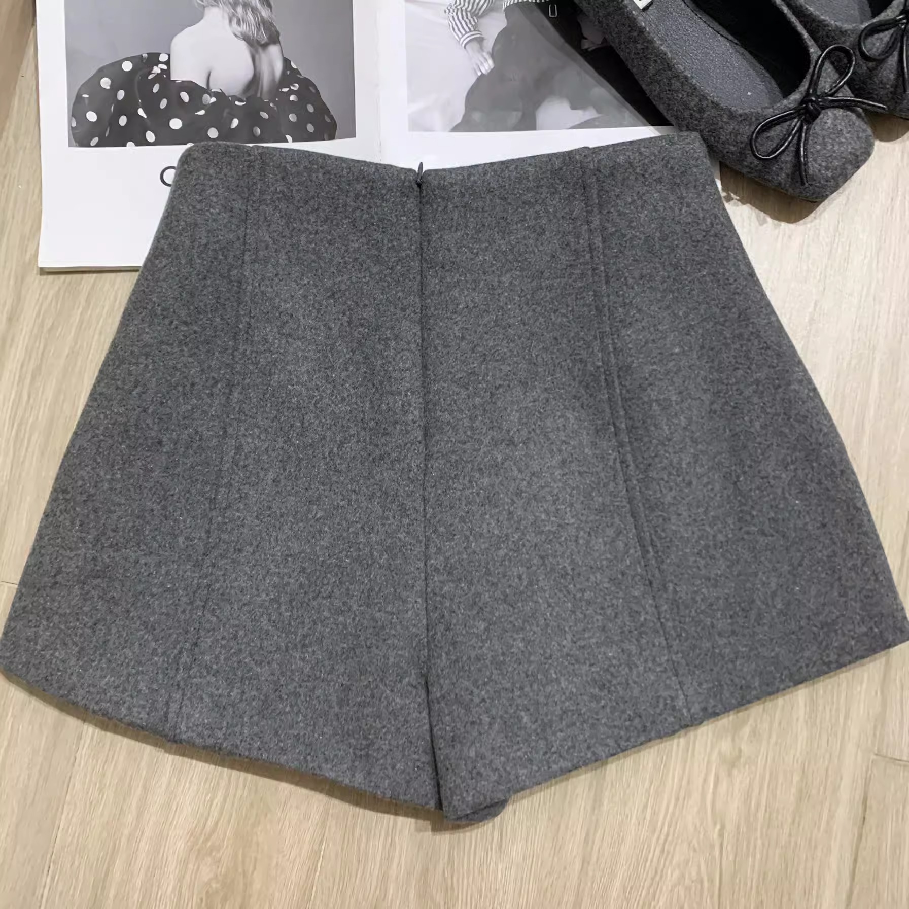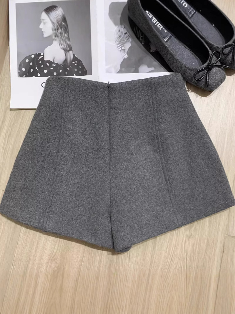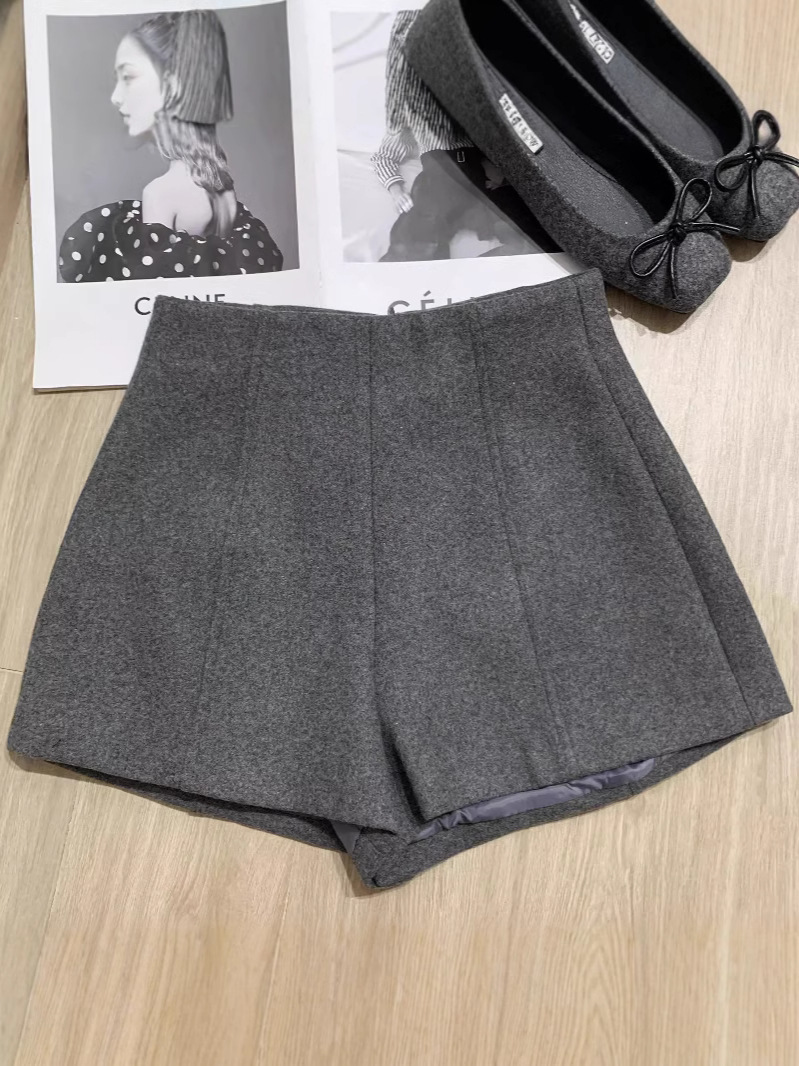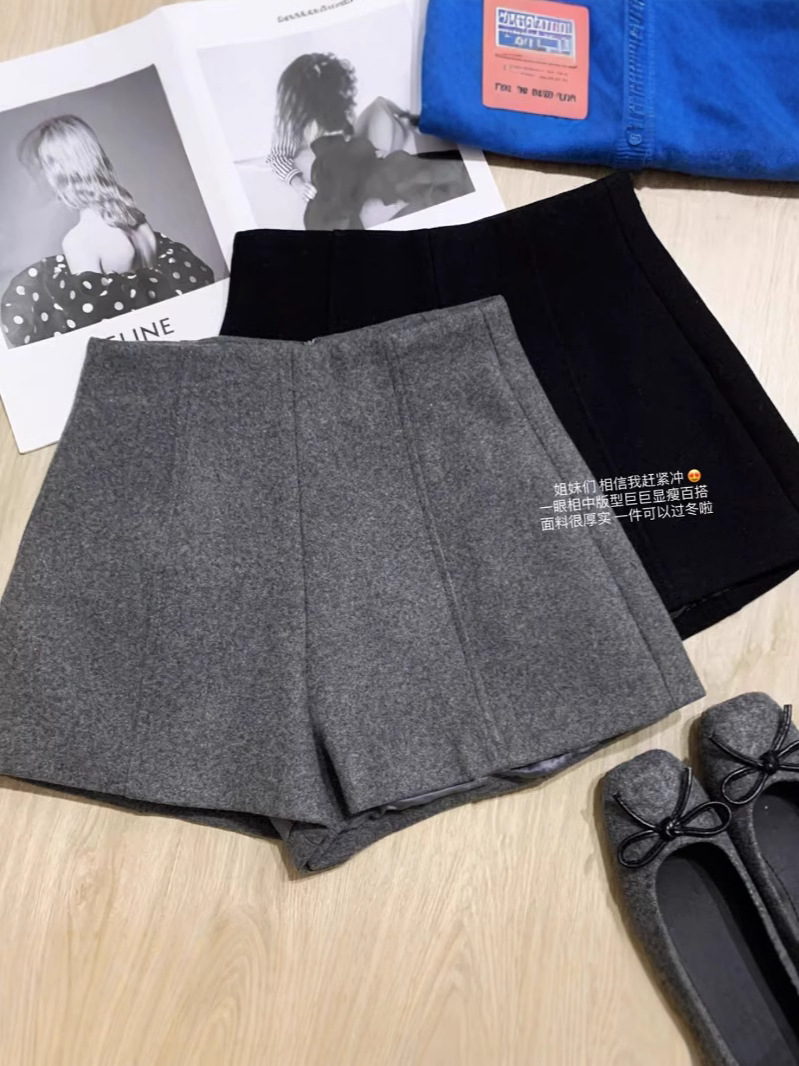 Главная страница > Серая утолщенные шерстяные шорты повседневные женские осенние и зимние брюки с высокой талией и брюки с тонкими широкими ногами