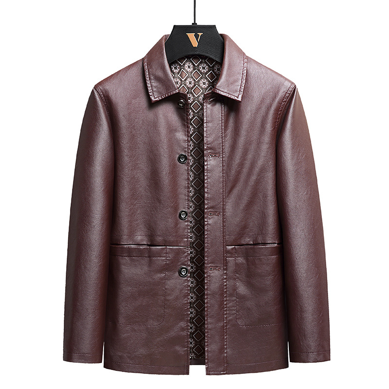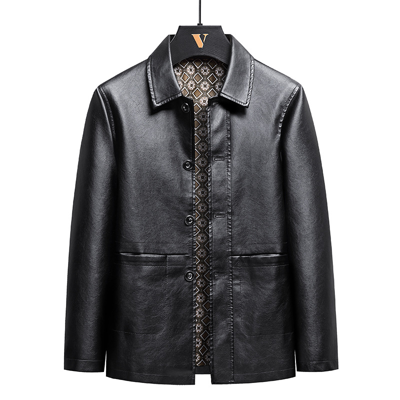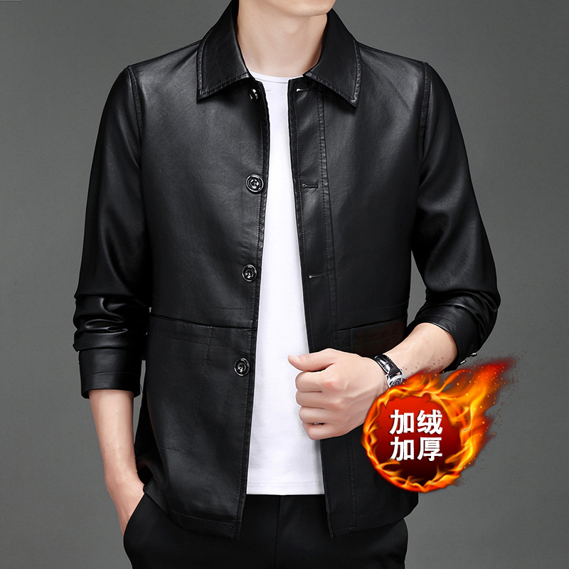 Главная страница > Осеннее Новое кожаное пальто с лацканами, мужская повседневная универсальная мотоциклетная одежда, модная кожаная куртка больших размеров для пап среднего возраста в Корейском стиле