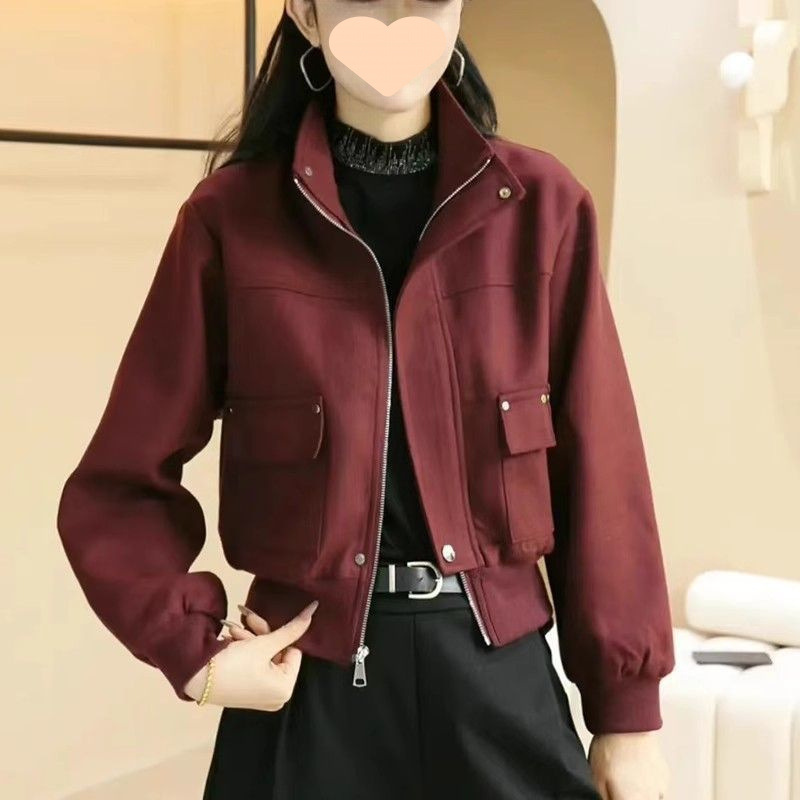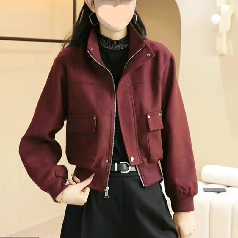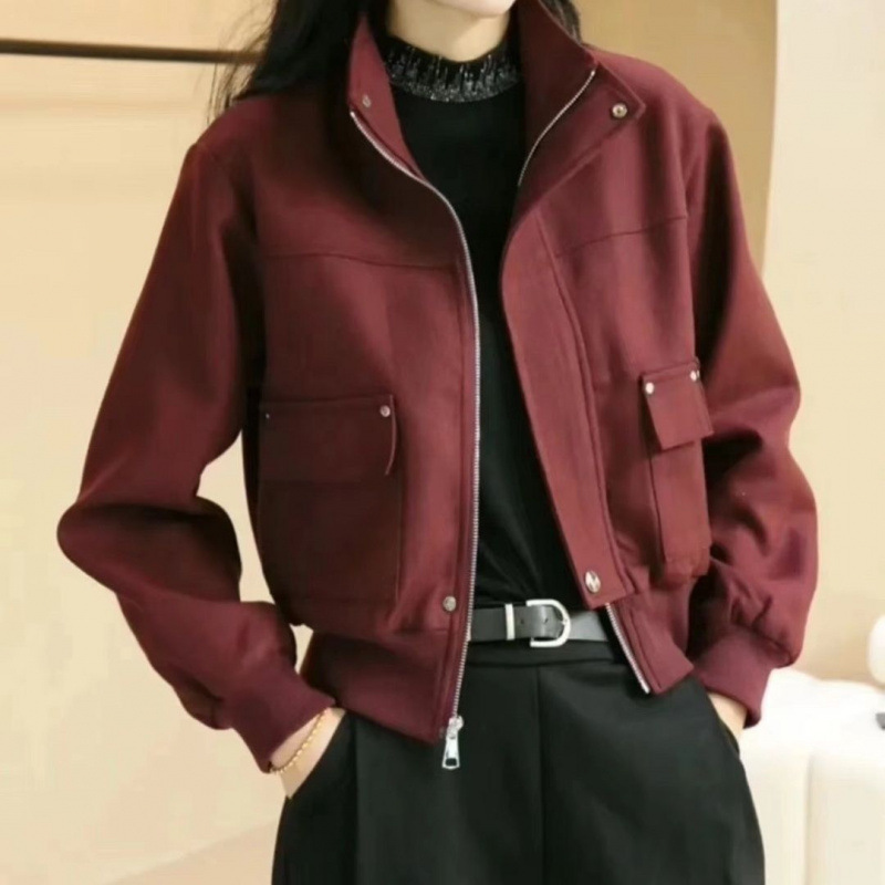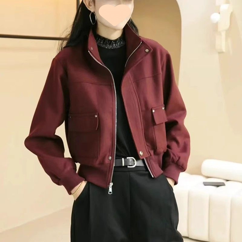Главная страница > Красная короткая куртка с воротником-стойкой Ankora для женщин, весна-осень 2025, новый стиль, повседневная и универсальная тонкая куртка, модный топ