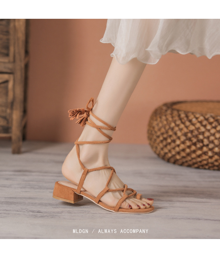 Главная страница > Сандалии на массивном каблуке с квадратным носком, римские сандалии с кисточками, богемные винтажные сандалии на среднем каблуке, женские