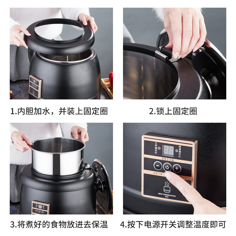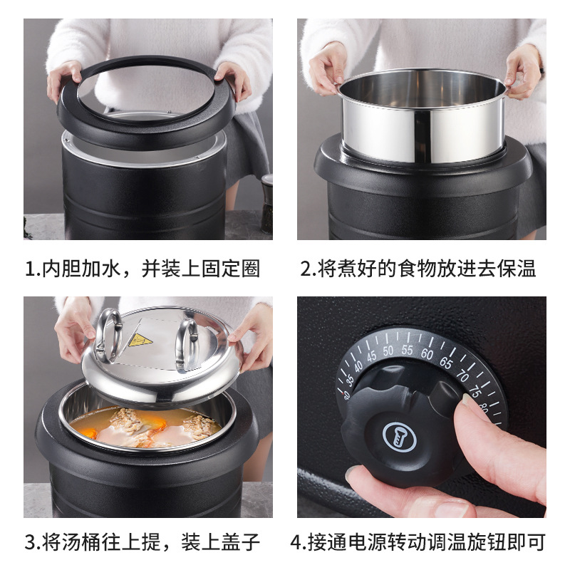 Главная страница > Электронный теплый суповый горшок 304 из нержавеющей стали черный суповый горшок Электрический Теплый каша отель завтрак каша шведский стол изоляция суповое ведро