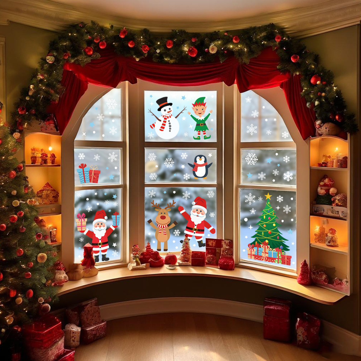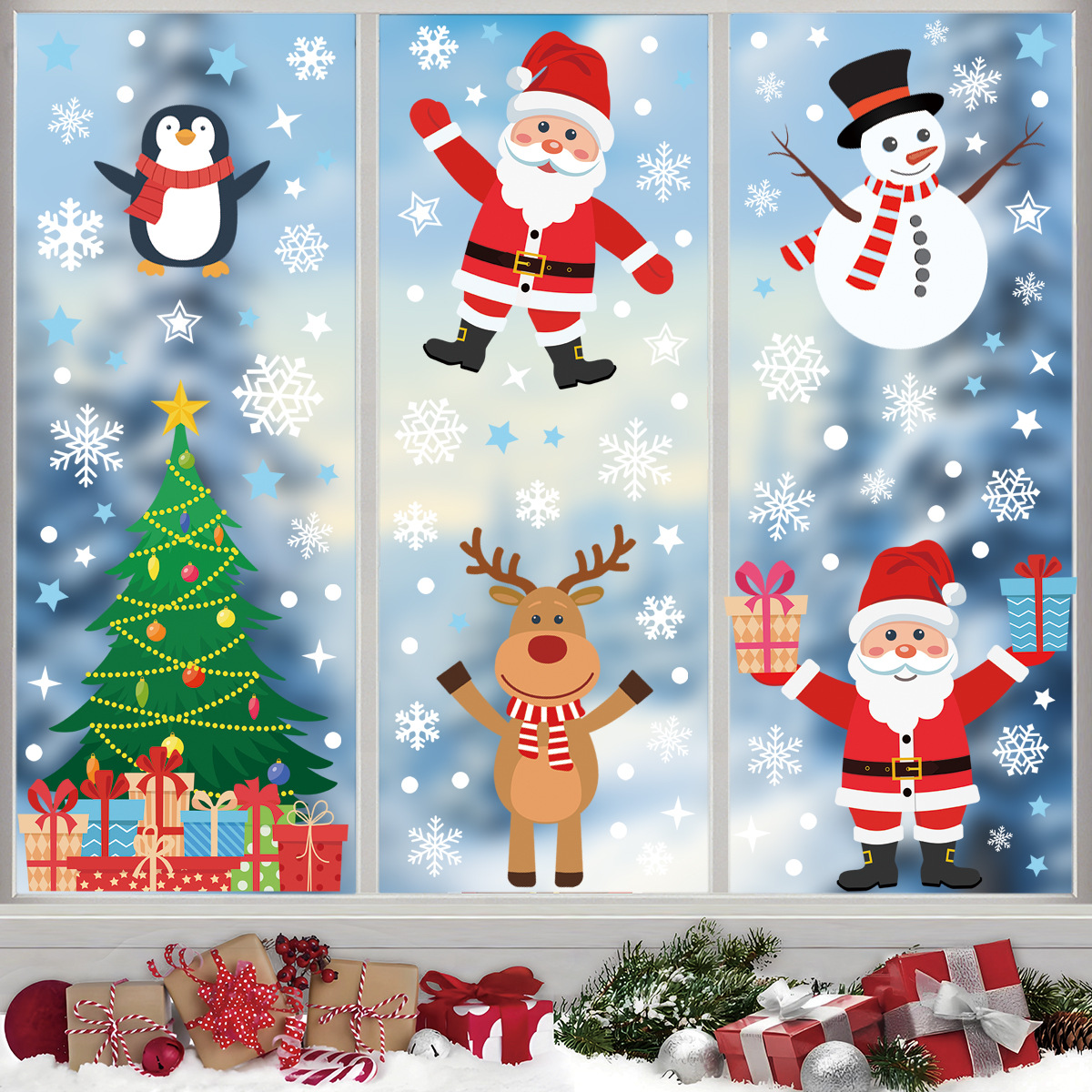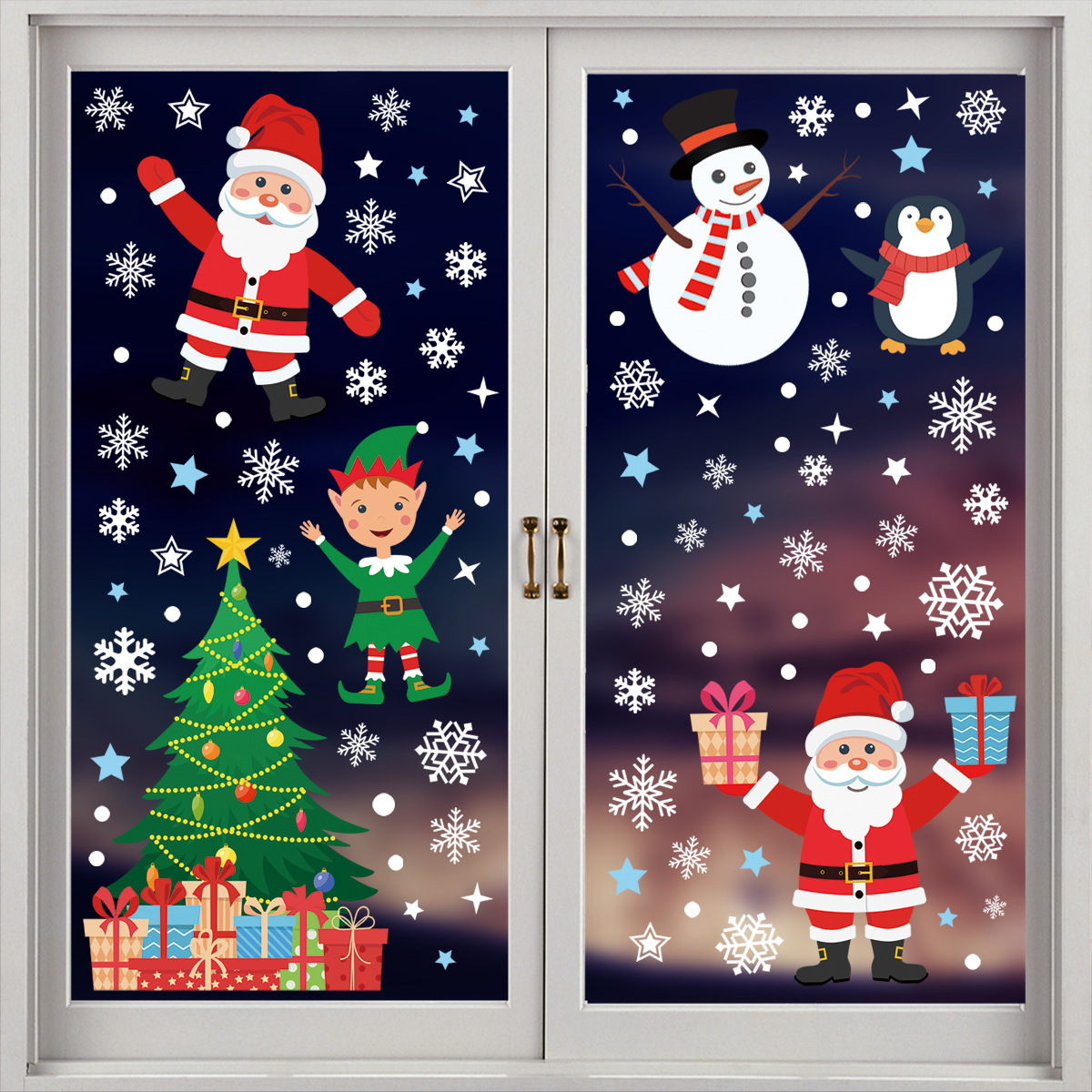 Трансграничные рождественские электростатические наклейки на окна Amazon, наклейки Санта-Клауса, снеговика, праздничные украшения для вечеринок, электростатические наклейки на окна