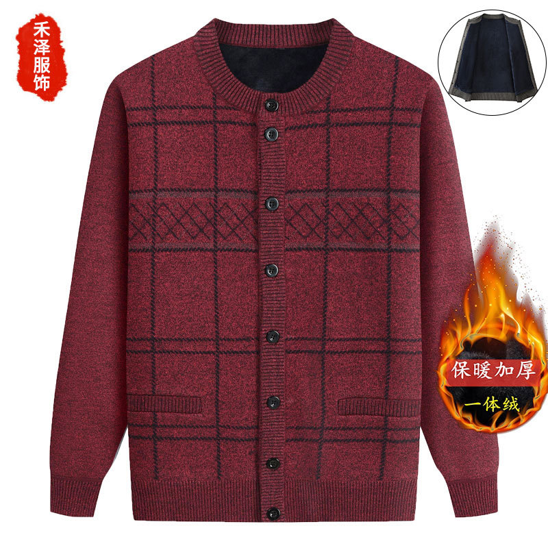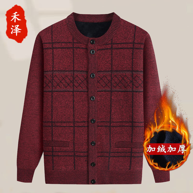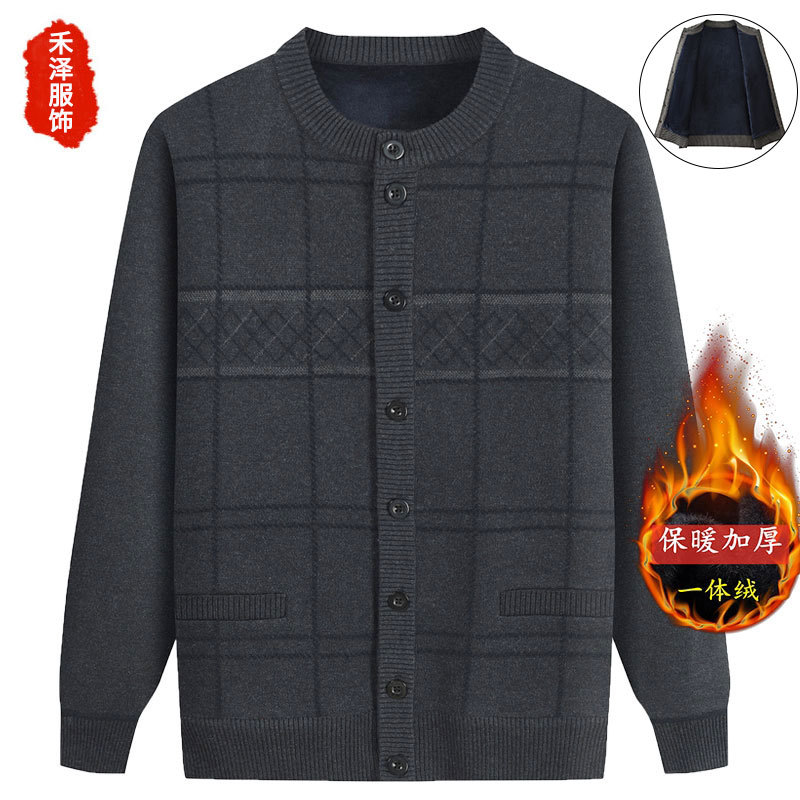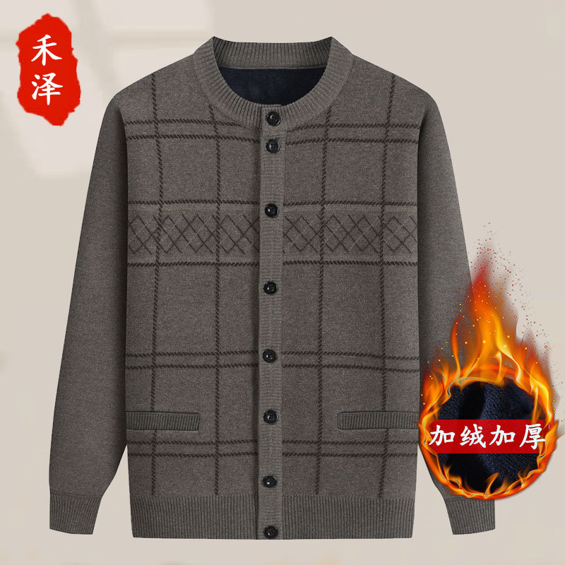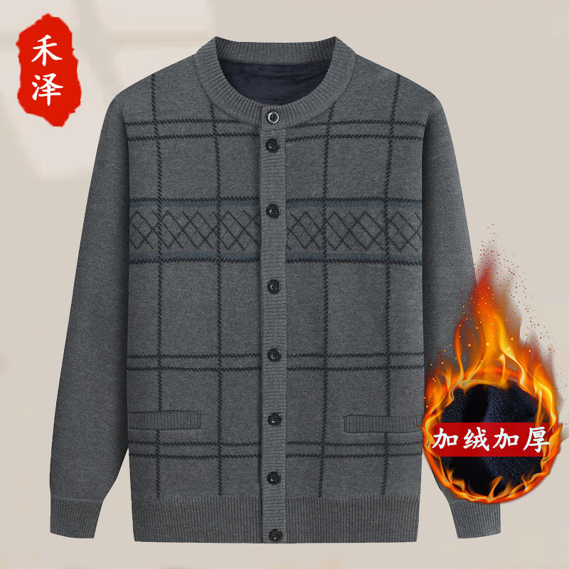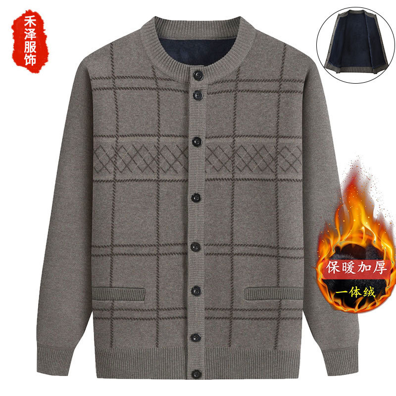 Главная страница > Осенне-зимний свитер для папы на флисовой подкладке Мужская трикотажная одежда для пожилых людей Дедушка Зимний теплый топ Кардиган для отца Куртка