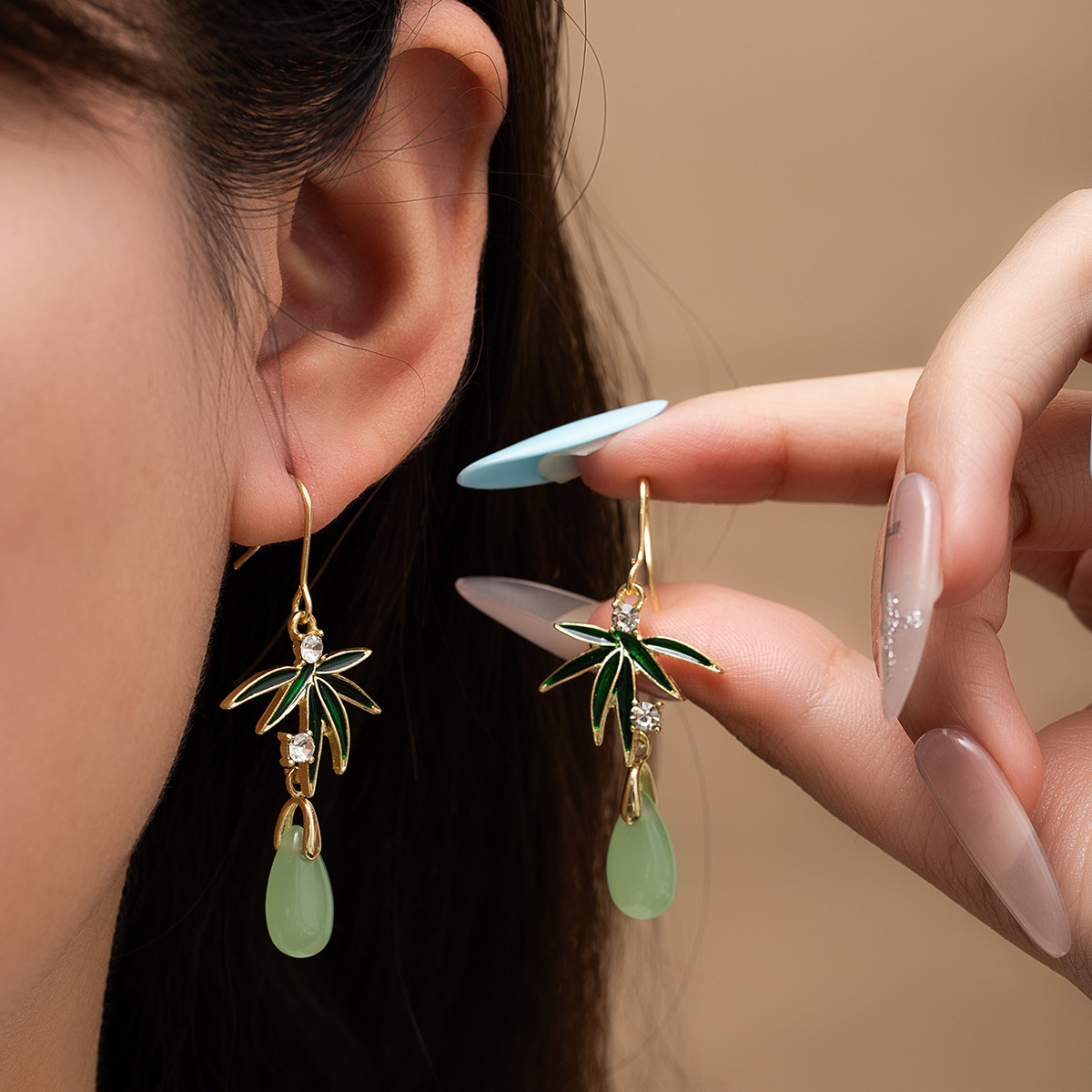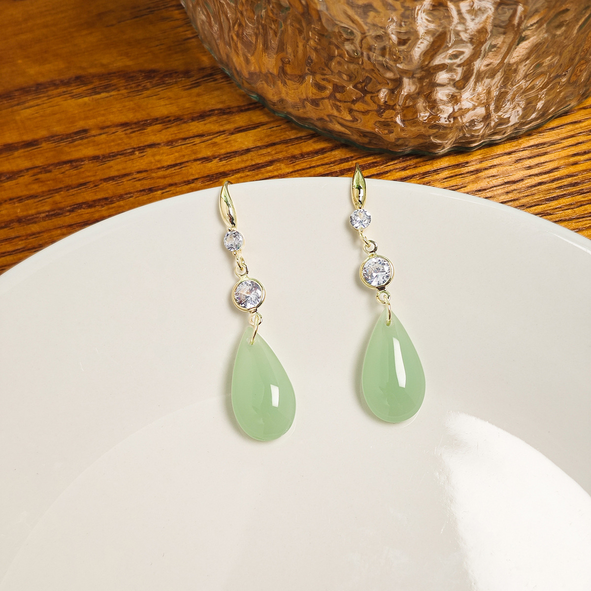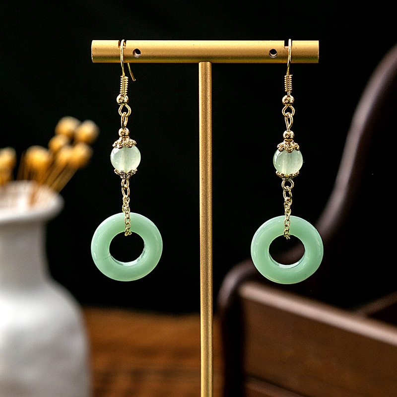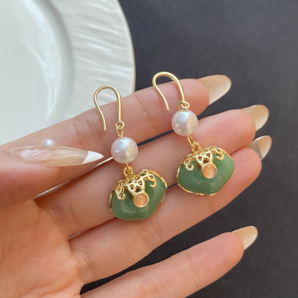 Главная страница > Имитация нефритового масла с бисером Новый китайский стиль серьги ретро капли воды с бахромой серьги простой Hanfu аксессуар женский