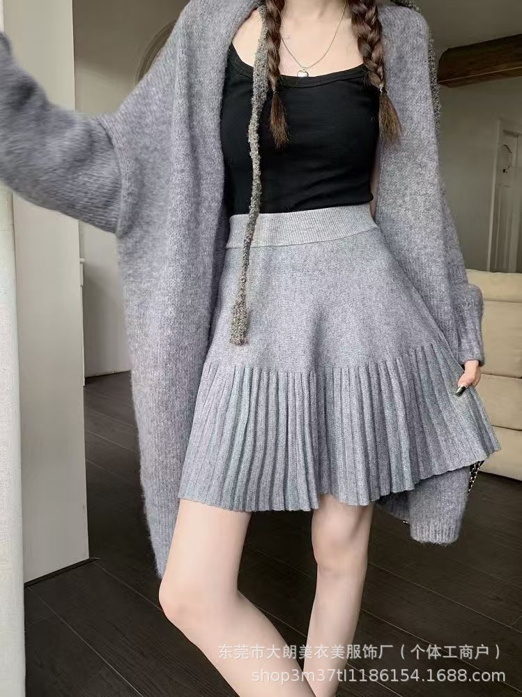 Главная страница > Чистый ветер плиссированный трикотажный серый юбка половинчатый женский весенний