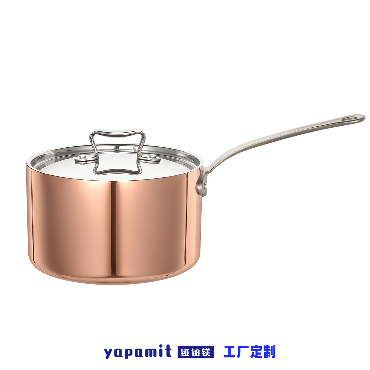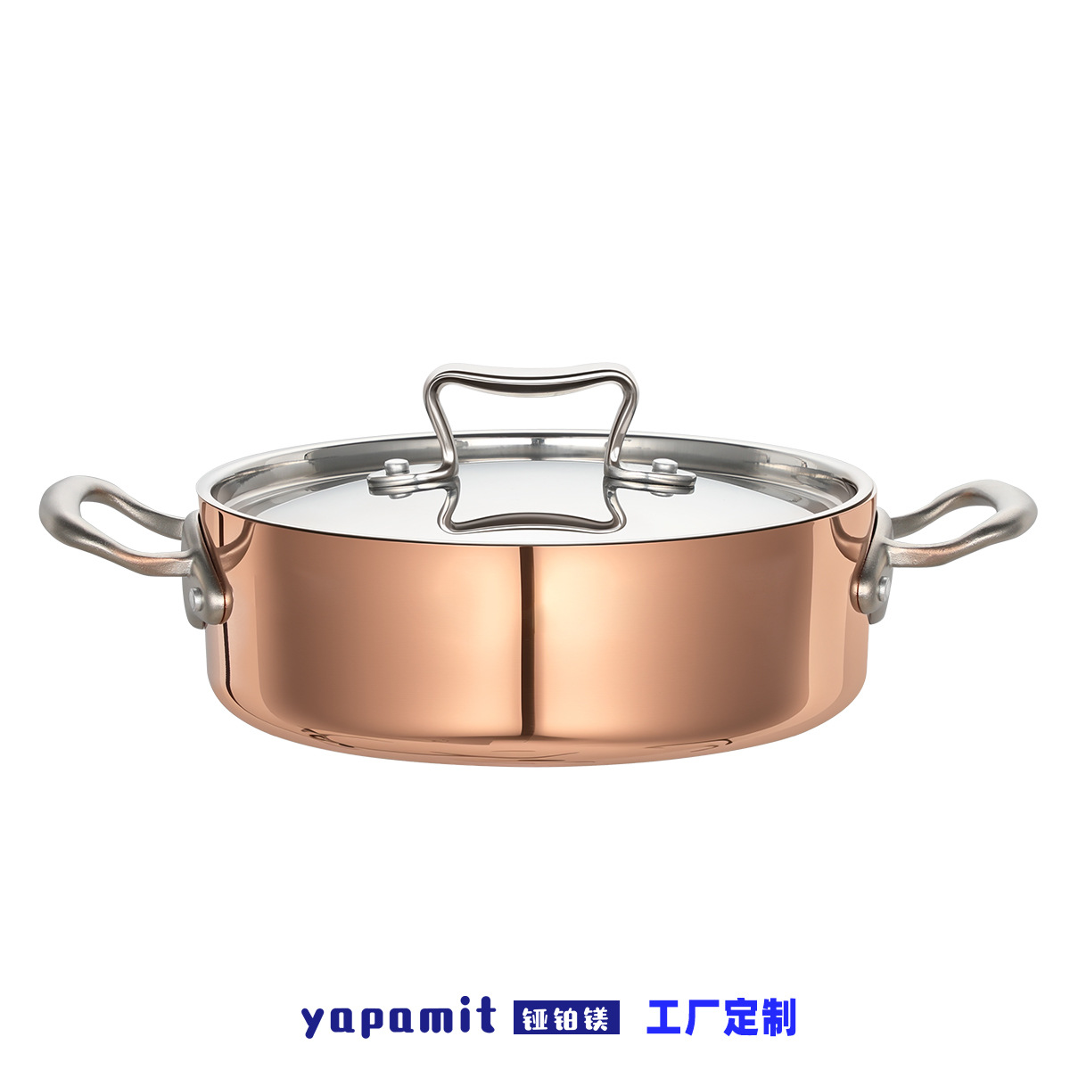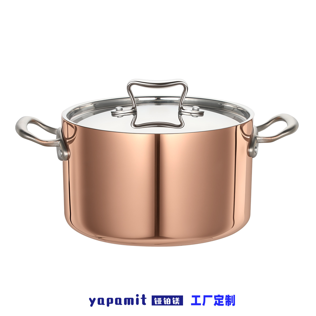 Набор утолщенных медных кастрюль на заказ с высокой эстетической ценностью, трансграничные кастрюли из пищевой нержавеющей стали 304 с двойными ручками.