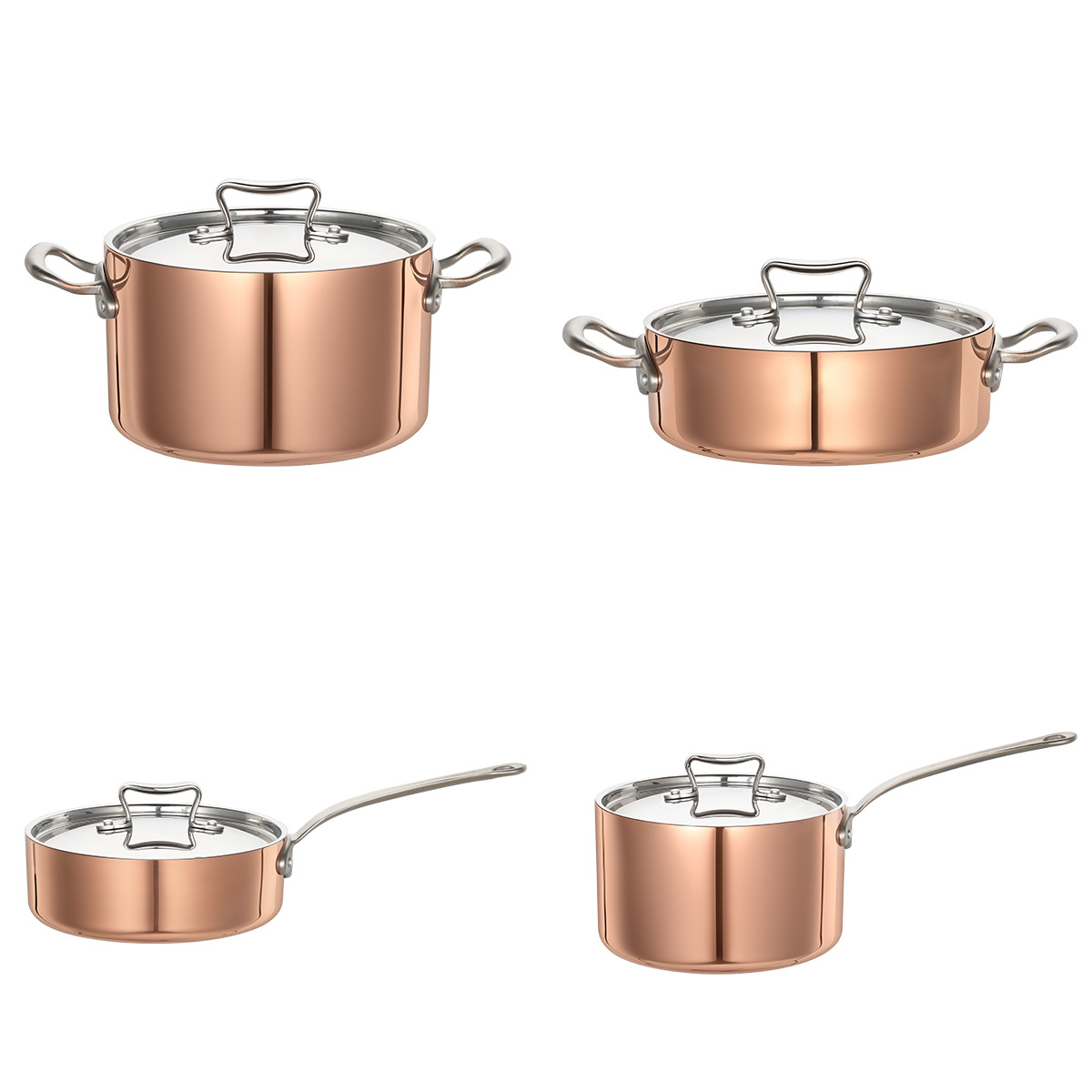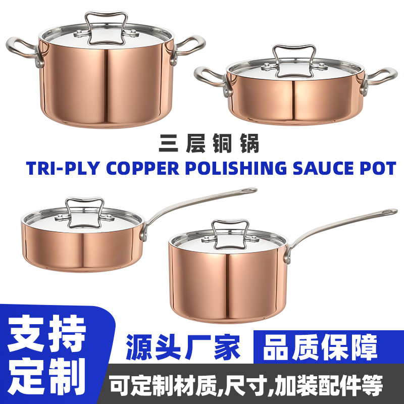 Главная страница > Набор утолщенных медных кастрюль на заказ с высокой эстетической ценностью, трансграничные кастрюли из пищевой нержавеющей стали 304 с двойными ручками.