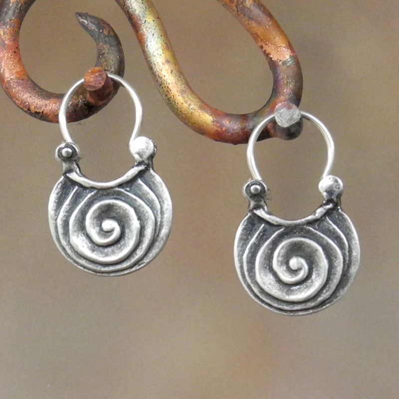 Главная страница > Простые геометрические цыганские изогнутые металлические серьги, винтажные полые вьющиеся древние серебряные серьги, независимые горячие продажи, Новинка